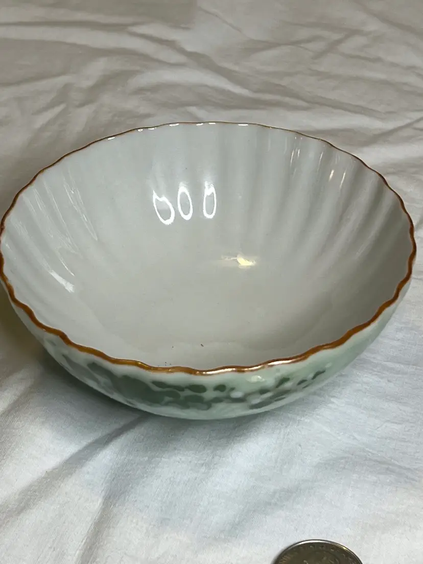 Fantastic vintage Asian rice bowl with fluted panels done in a pretty celadon glaze.