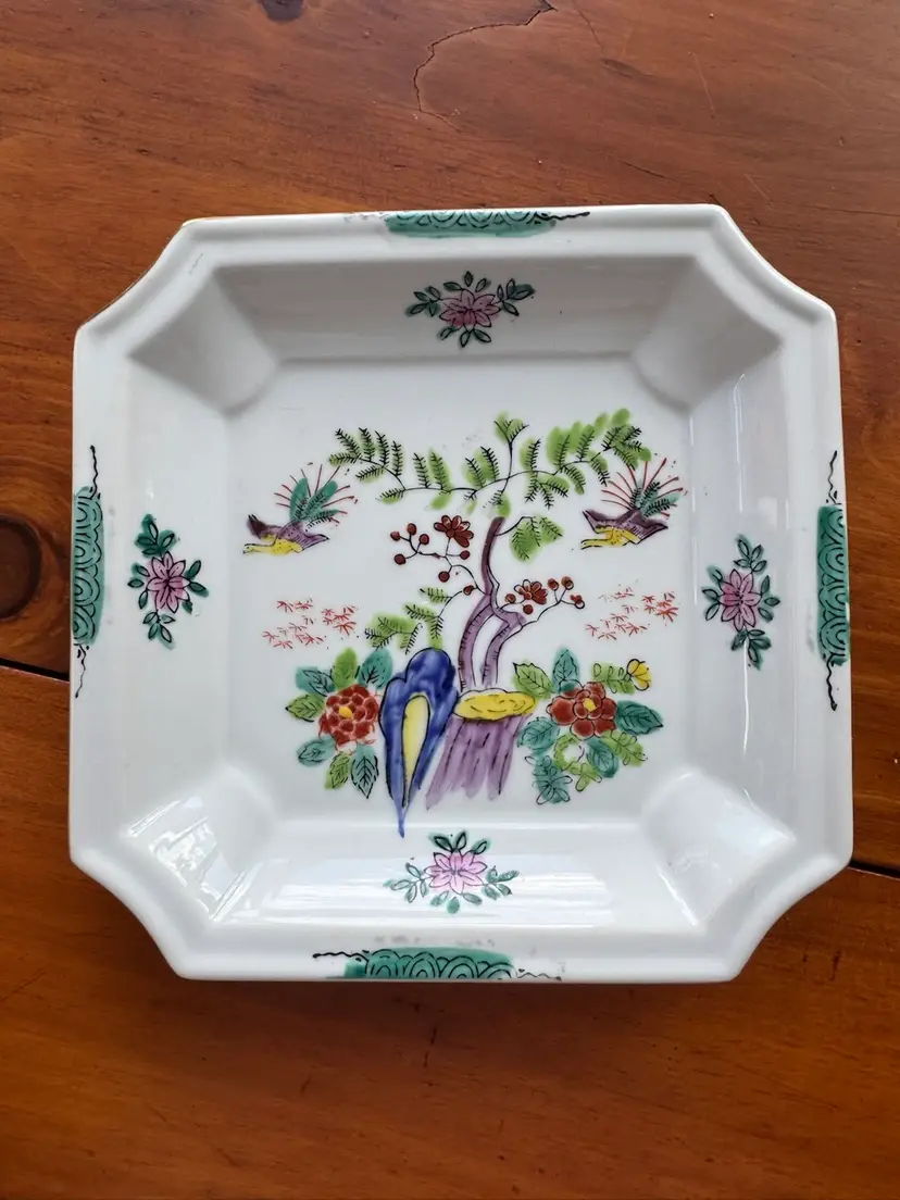 tage Asian Decorative Porcelain Plate and Bowl with Floral and Bird Designs Bundled No cracks or chips Plate size 8” Bowl size 6”