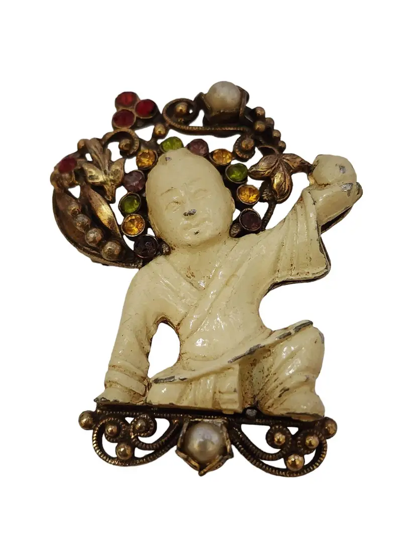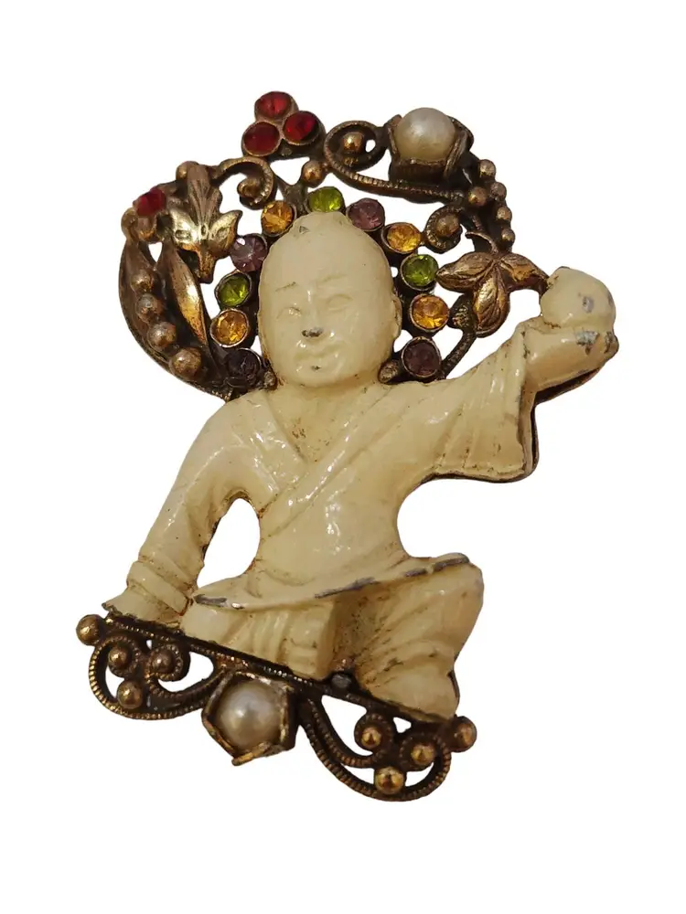 Vintage Asian Figural Brooch Attributed To Hobe (A3683)