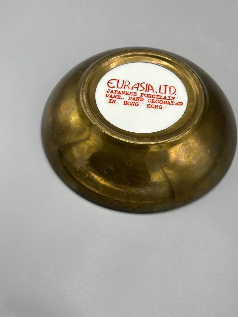 Vintage Asian gold fish plate featuring traditional craftsmanship and elegant design. This decorative piece measures 6 inches in diameter, making it perfect for display or as a functional accent piece. The warm gold tones and intricate detailing showcase authentic Asian artistry, ideal for collectors of vintage home décor and cultural artifacts.