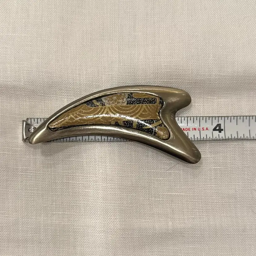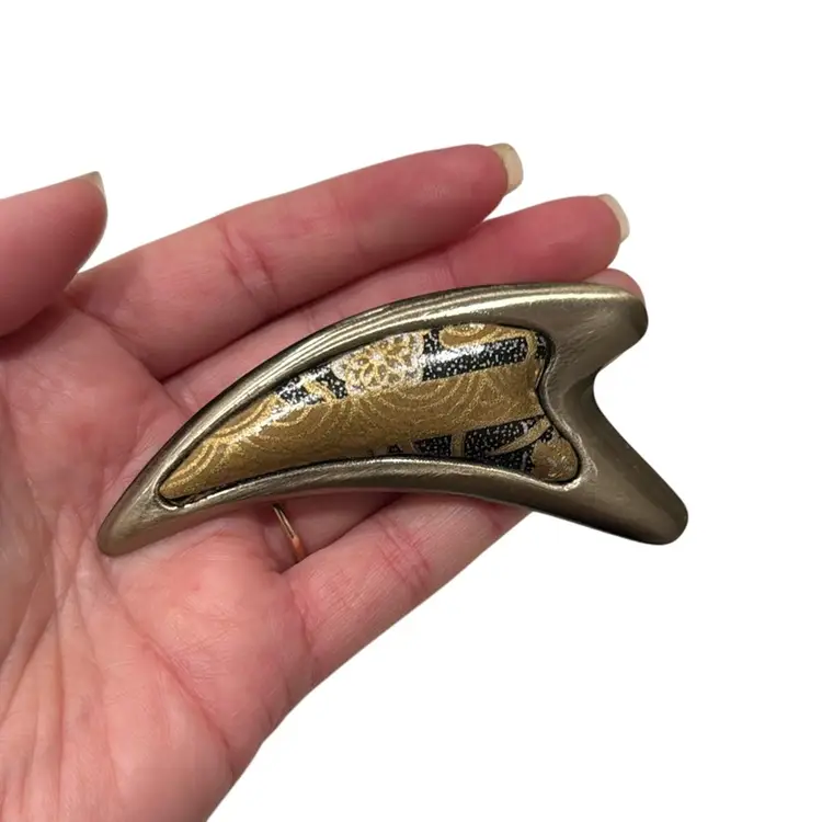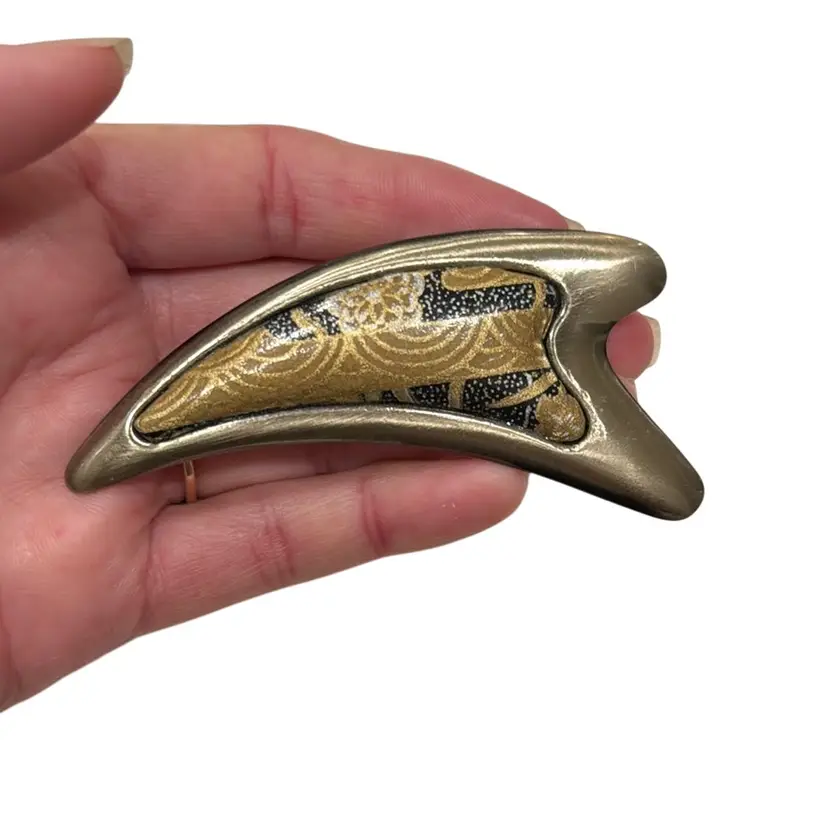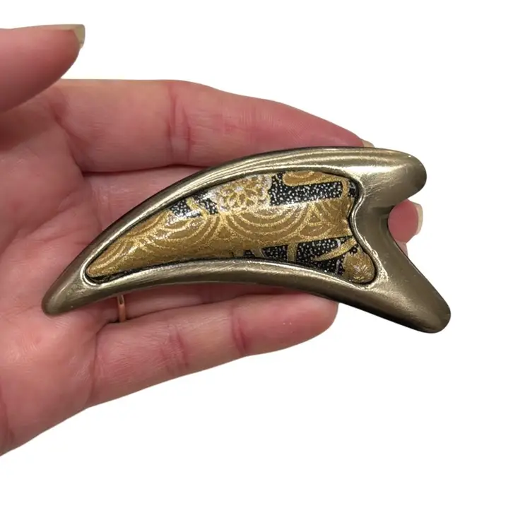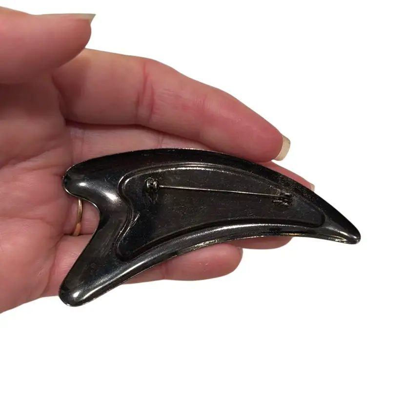 Vintage Asian Modernist Floral Brushed Brass Finish Arrow Brooch 3.5”