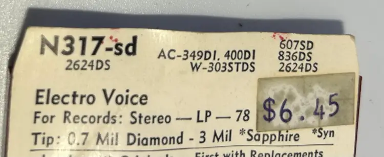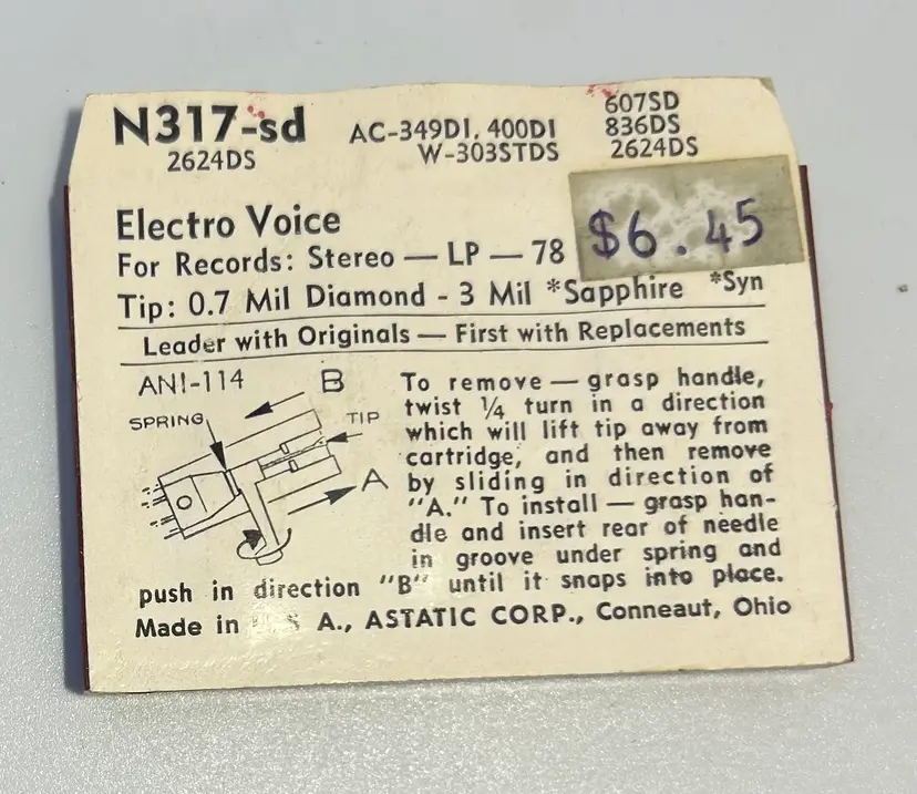 Vintage Astatic Diamond NOS Replacement Record Player Stylus/Needle N317-sd Electro Voice