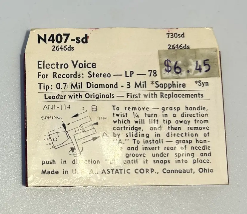 Please look at photos for specs, this needle is for Electro Voice products. All compatible will be listed on the packaging in the photos, so please make sure you research if this is the right one before buying.