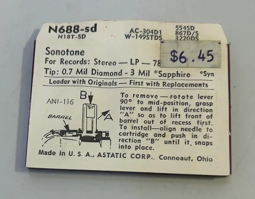 Please look at photos for specs, this needle is for Sonotone products. All compatible will be listed on the packaging in the photos, so please make sure you research if this is the right one before buying.