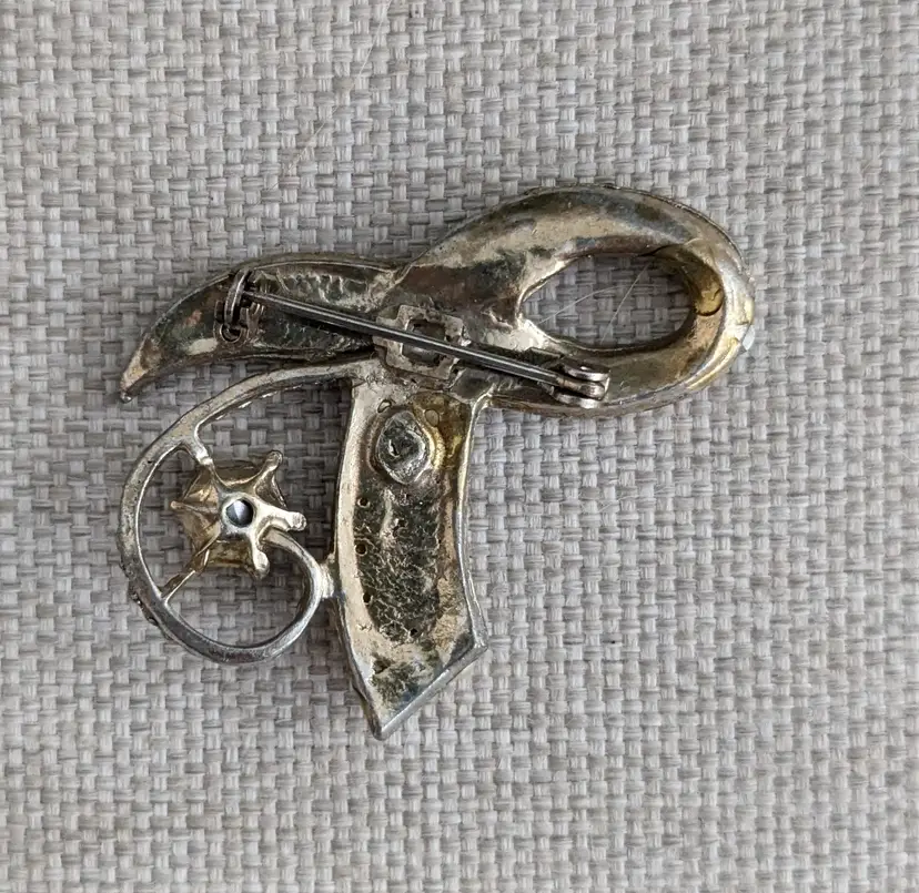 Constructed of pot metal, 2" long, all stones are present, unmarked