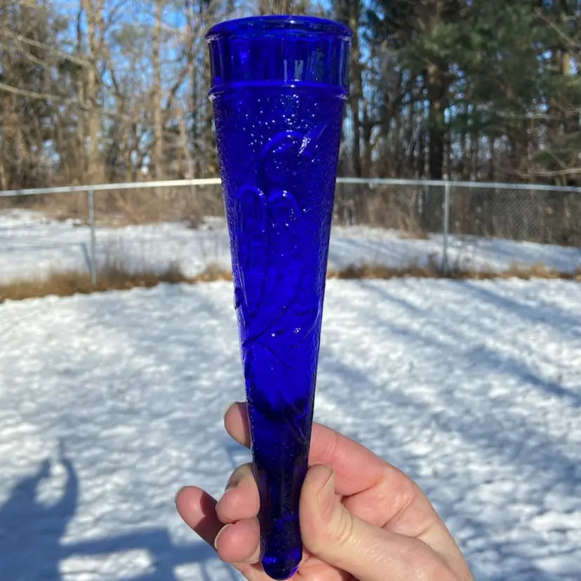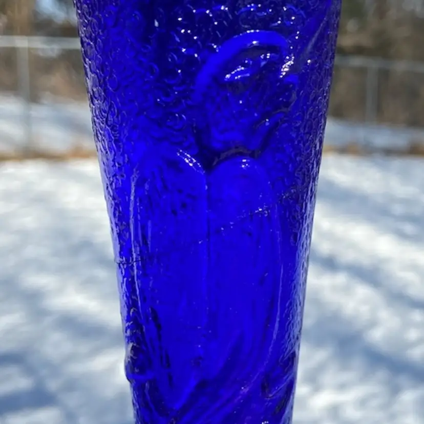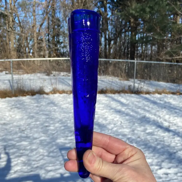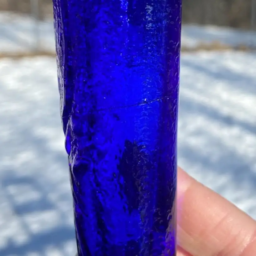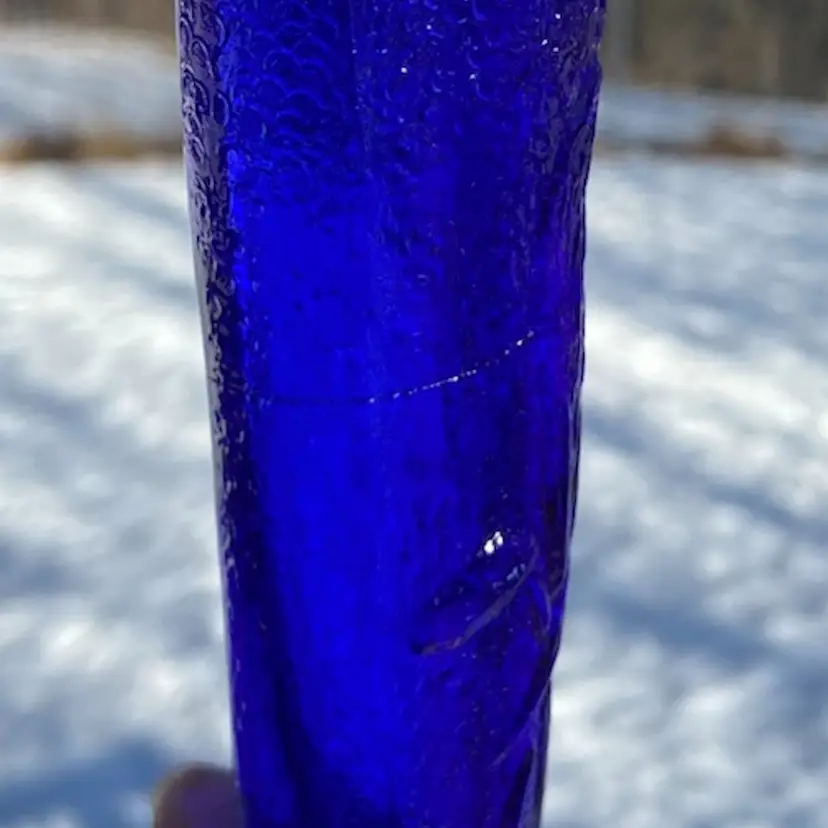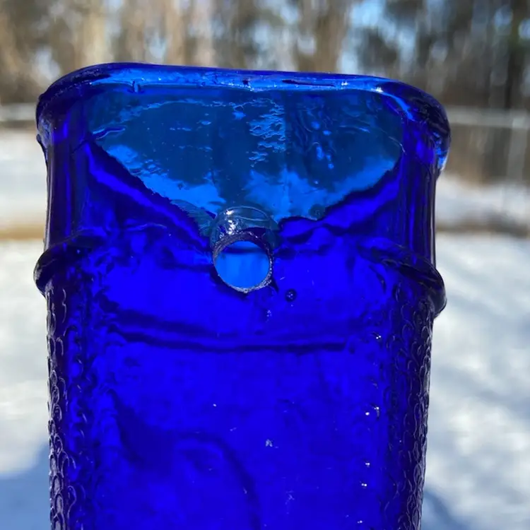Approx: 8”h x 2 1/8”w x 1 1/2”d (opening 1 5/8”w x 1 1/8”d). Preowned condition. No chips or cracks. Manufacturing marks in the glass. See all images as part of the description.