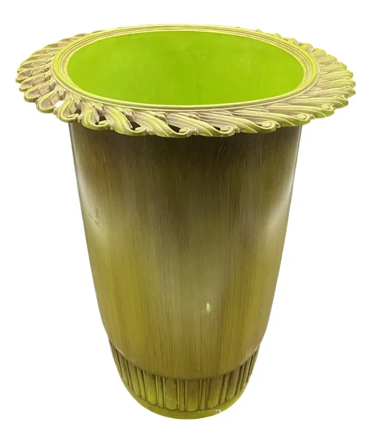 Vintage Avocado Green Ornate Scroll Large Trash Can Syroco 11.5"H x 13"W