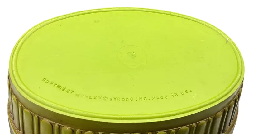 This vintage Syroco trash can combines retro-inspired design with functionality. The avocado green color and ornate scroll detailing make it a statement piece for any space.
