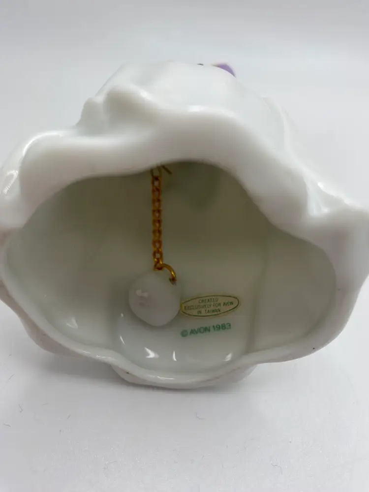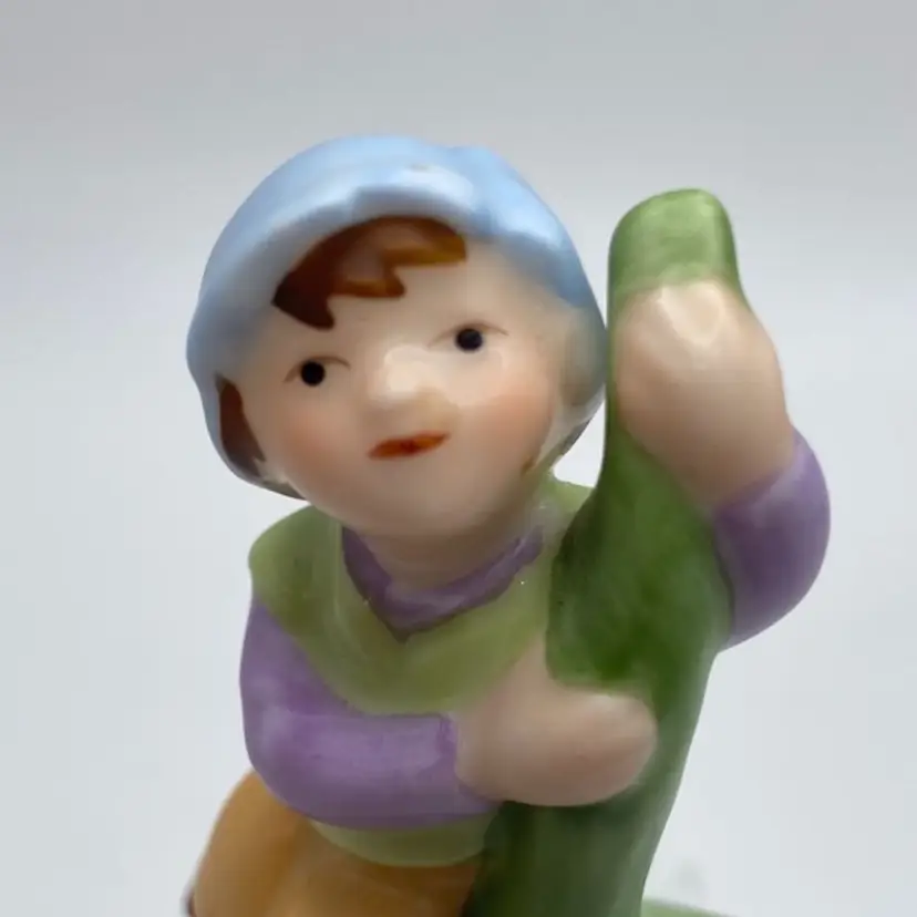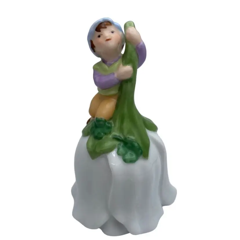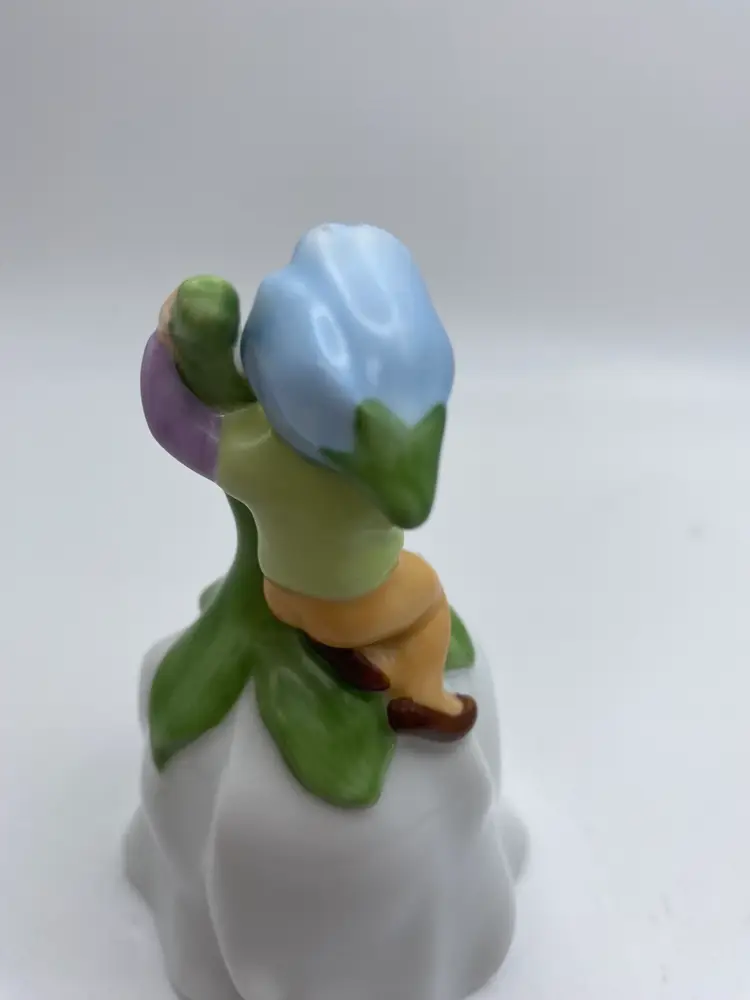 A sweet bell with shamrocks and an elf sitting on the top, ready to ring it. No chips. Great condition. Measures 4.25” high 2.75” wide