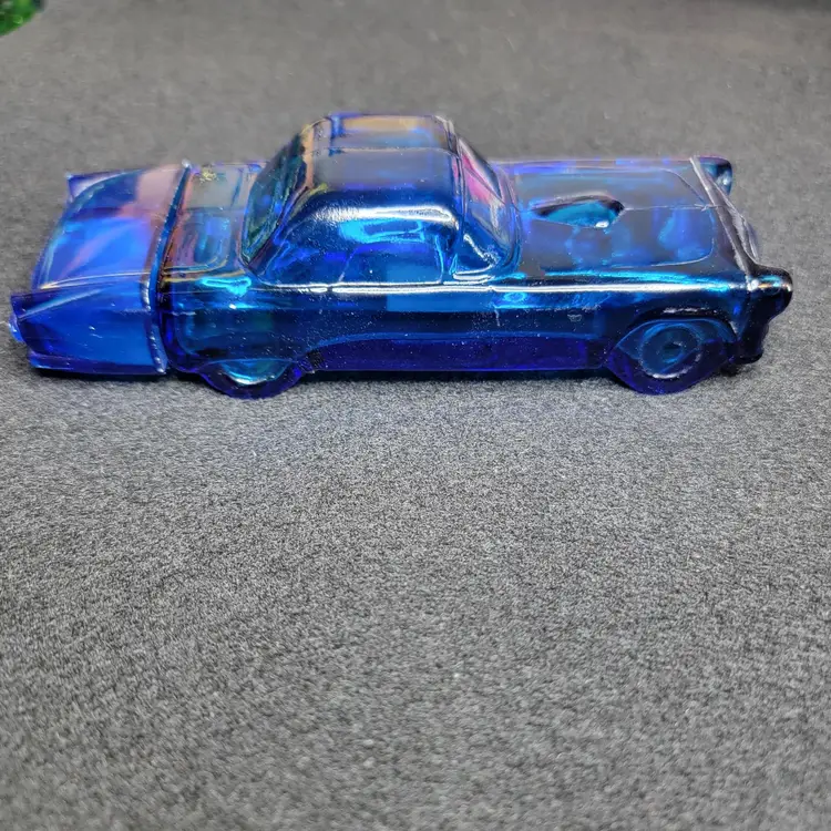 Charming blue glass car figurine with a sleek design. Perfect for collectors or as a unique decor piece. Empty
