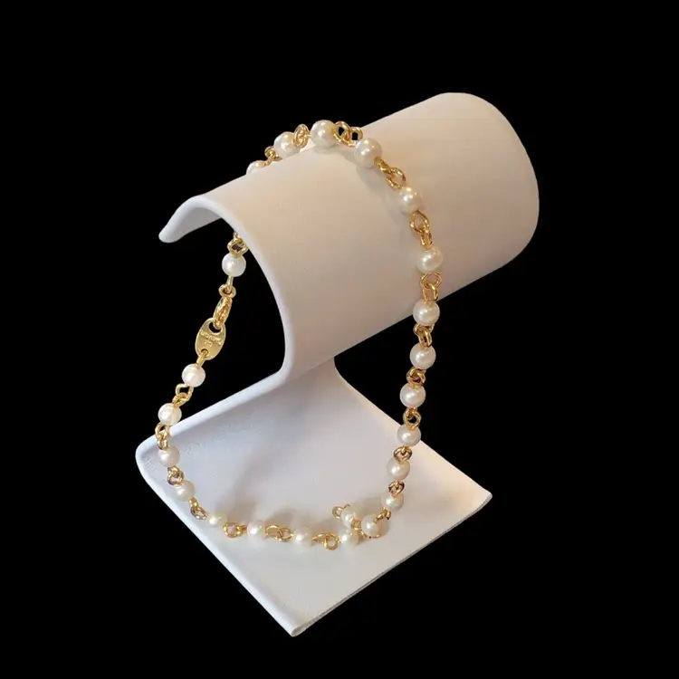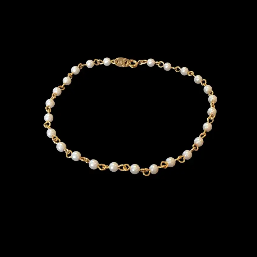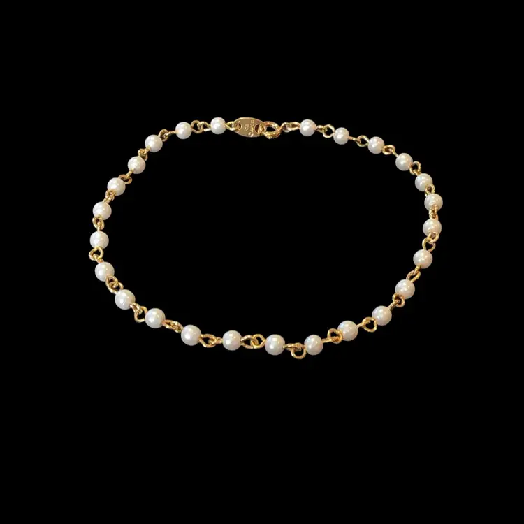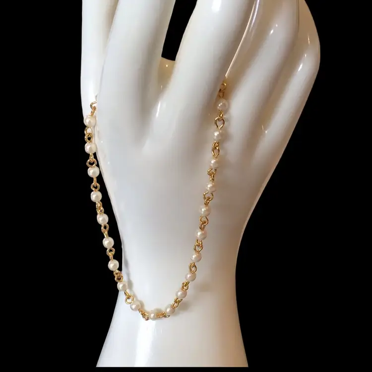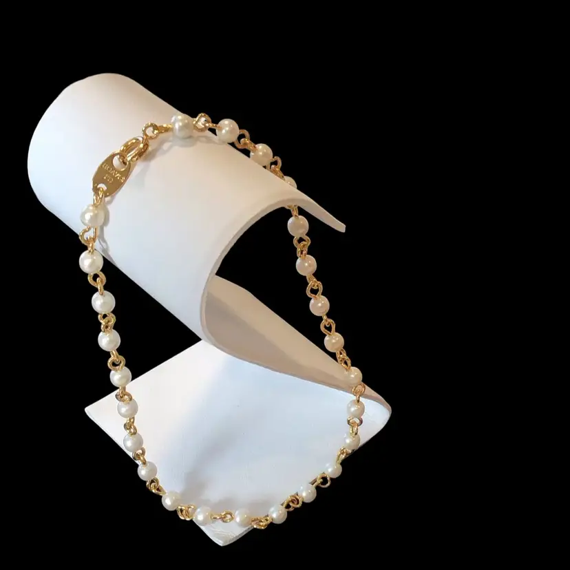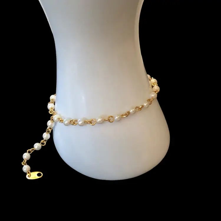 1980s gold tone & faux pearls anklet 9”. Can be shortened to fit wrist. #329