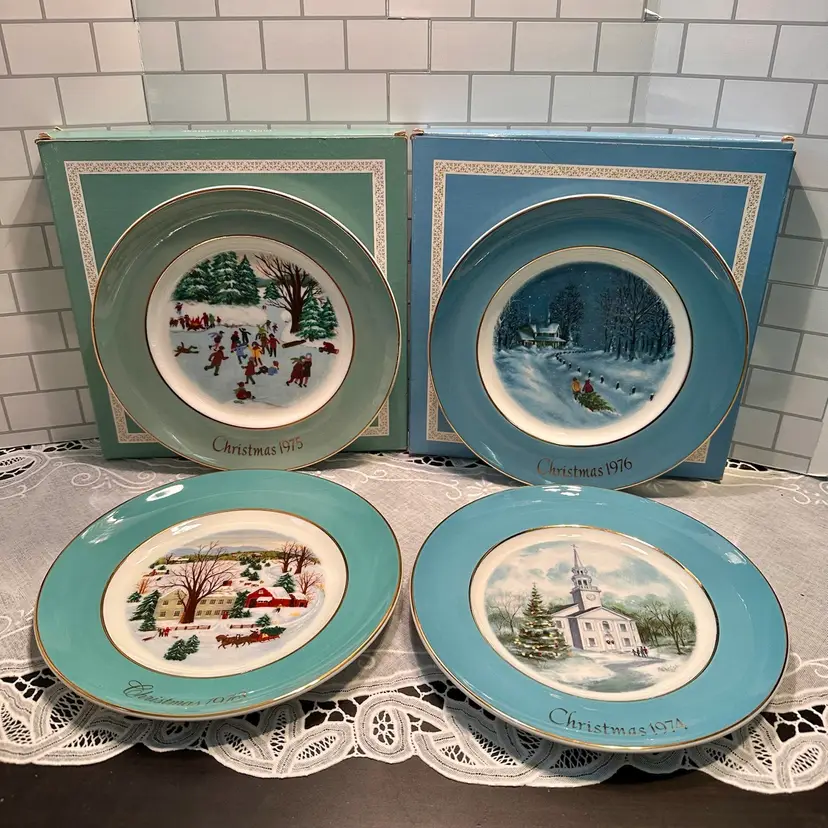 4 Avon Christmas Plates - all with crazing. Please refer to pictures.