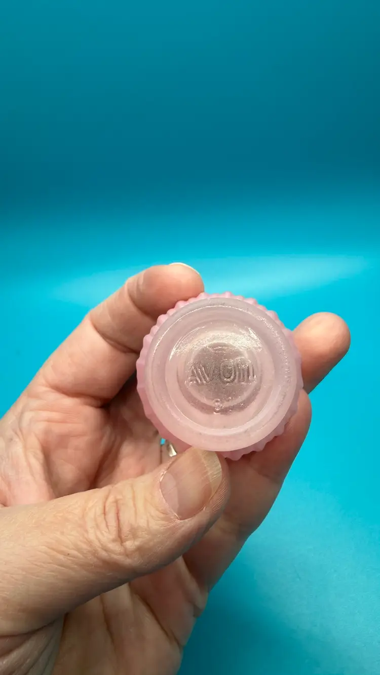 Vintage Avon Elusive Cologne .5 Oz Frosted Pink Bottle w/Rose Lid 1960’s Empty. Some light wear on the lid and some spots of color loss to the bottle. Please see photos for condition. Measures approx. 2.25" tall Items come from a smoke free home. If you have any questions, please feel free to contact me.