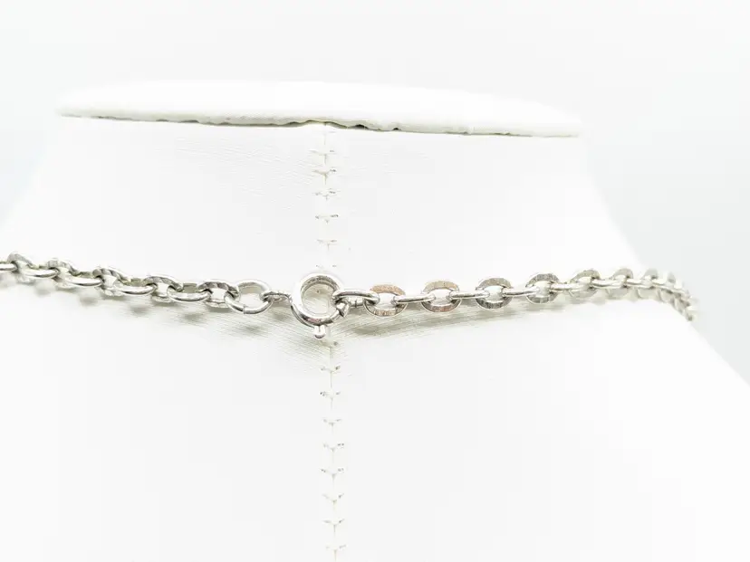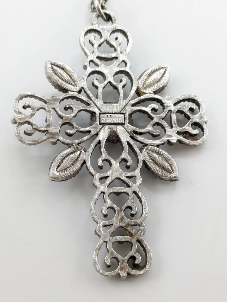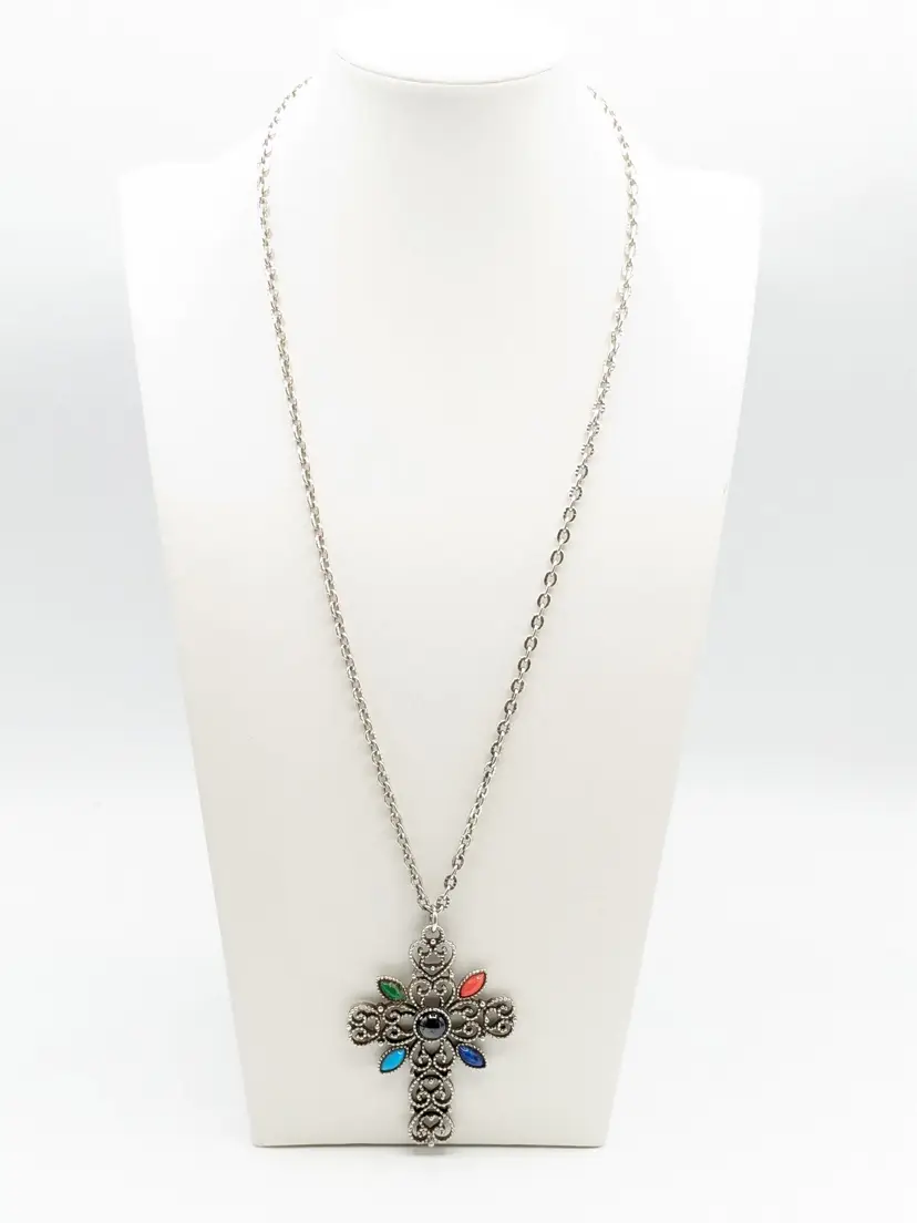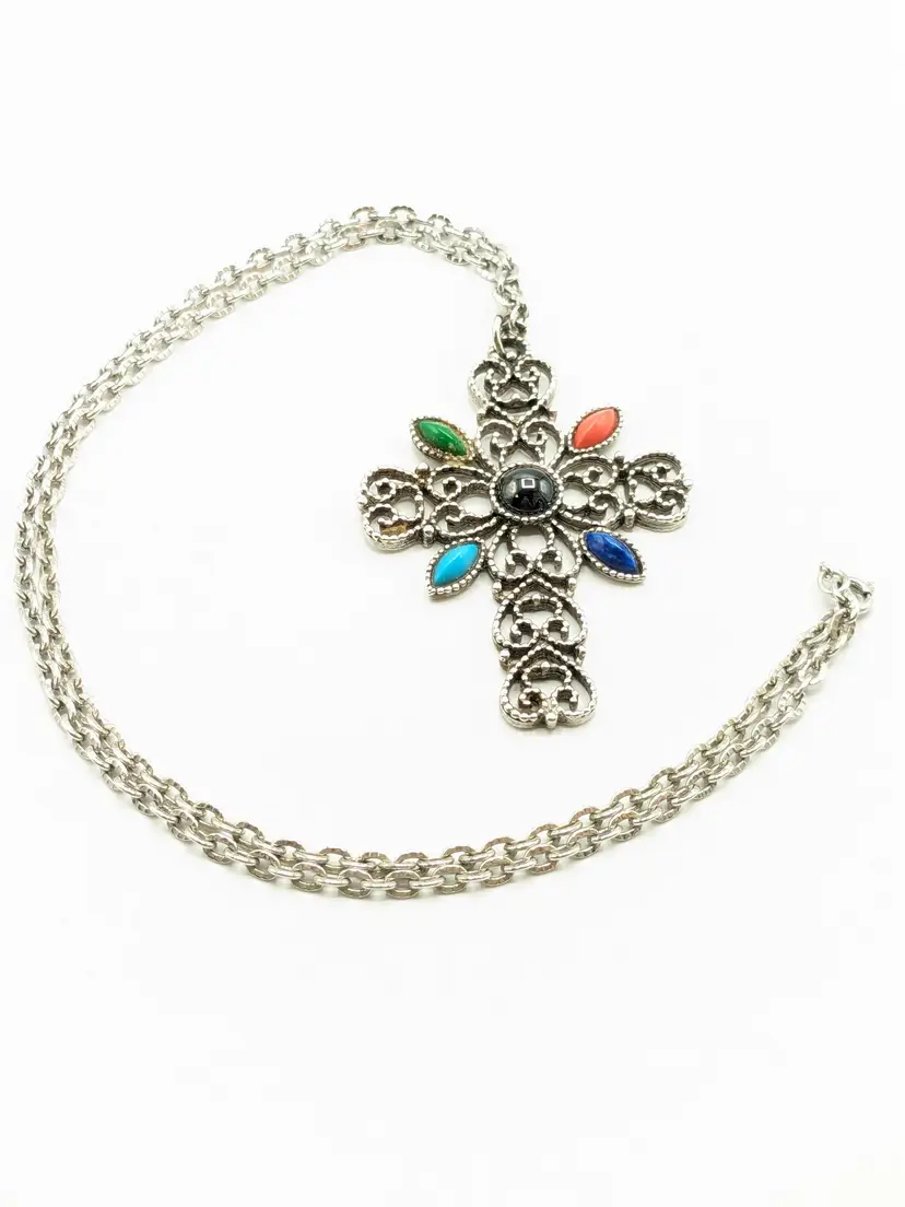 Good condition. Chain measures 24" and cross is 3" length and 2" wide.