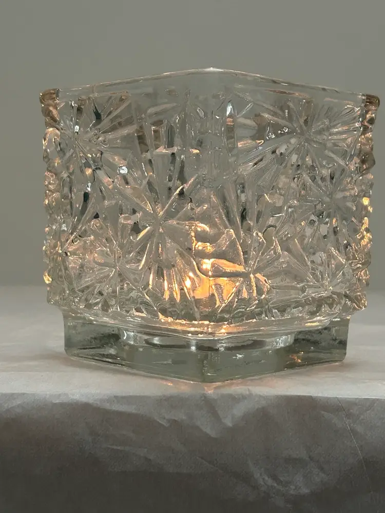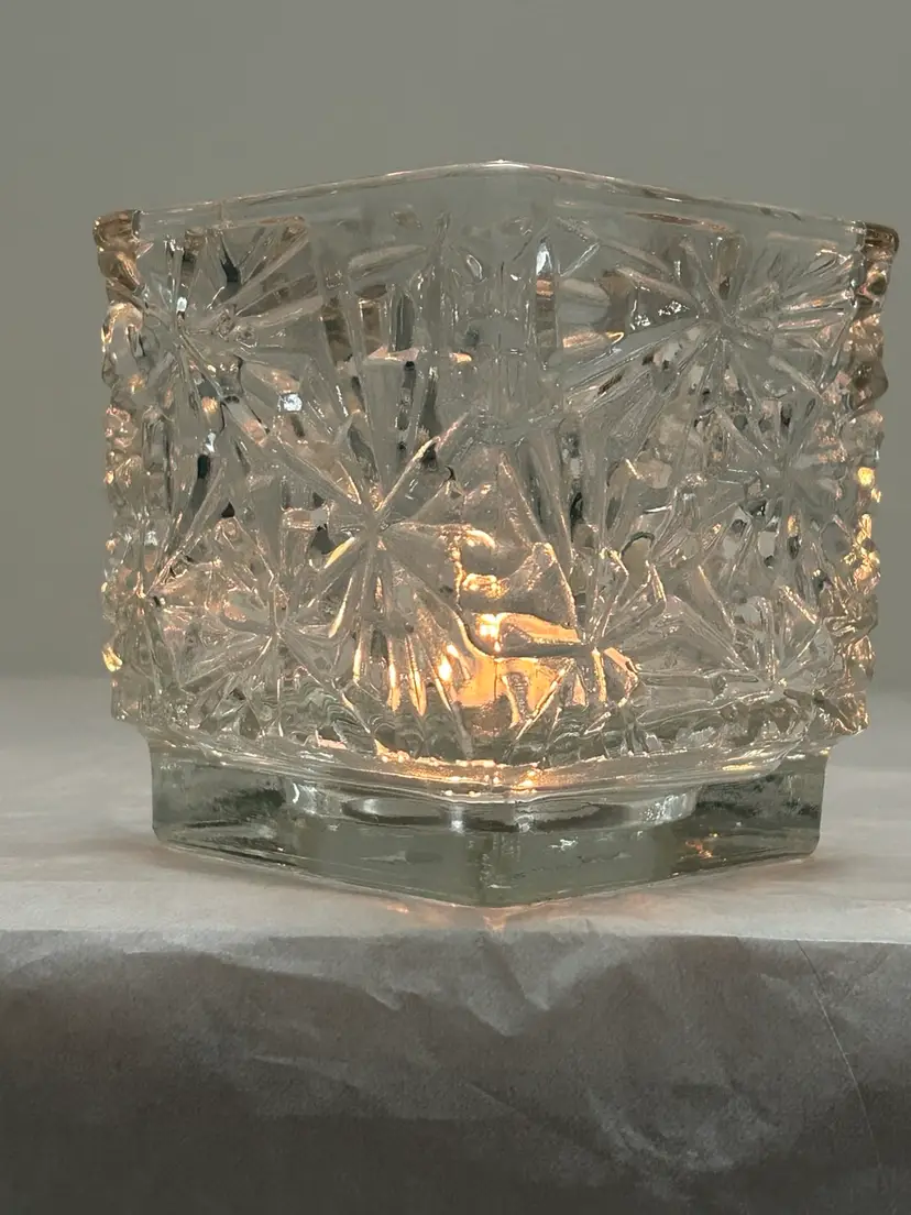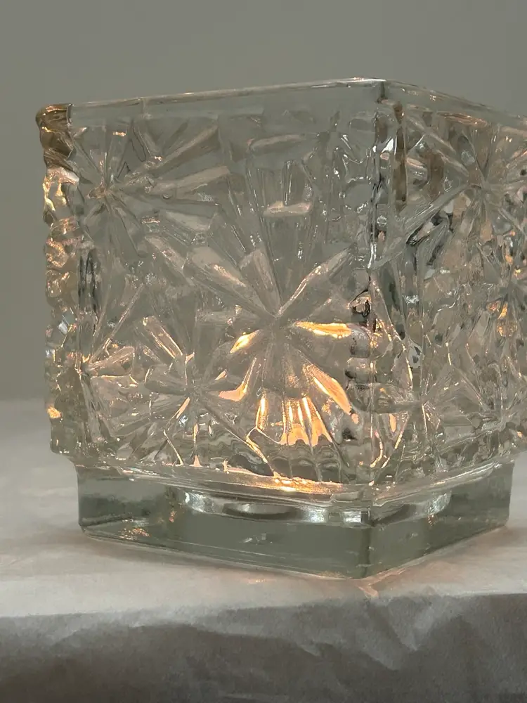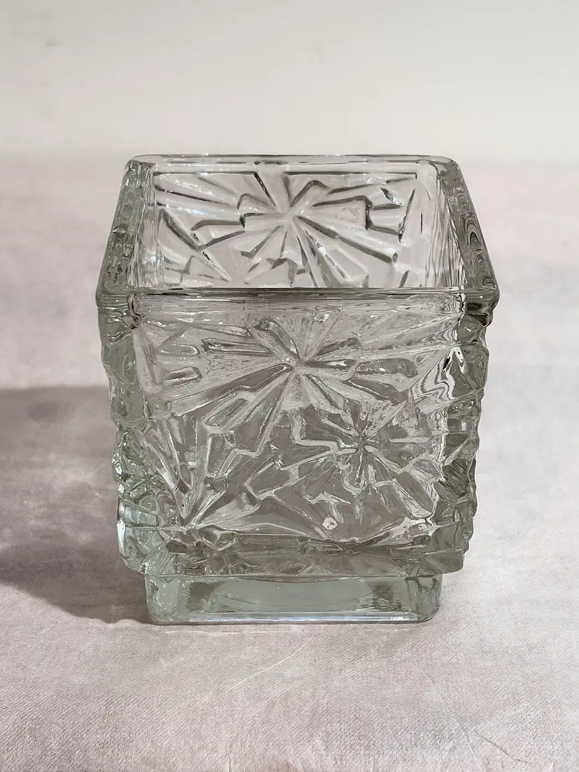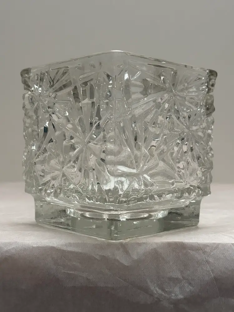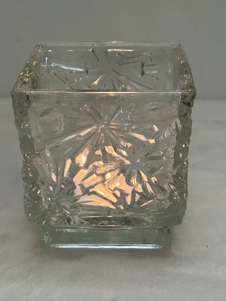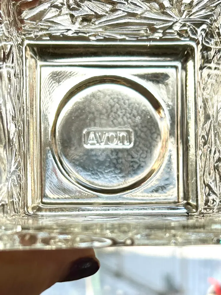 This Avon Square Votive holder has a sparkling, cut-glass appearance and geometric patterns like Ice Flowers. The collection is called Winter Ice from the 1990’s. The Avon logo is embossed on the base. No chips, cracks, yellowing from age or wax residue. 3 3/8” x 3 3/8” x 3 1/2” ** Browse my collection of glass vintage pieces, you may find the perfect gift or personal treasure.