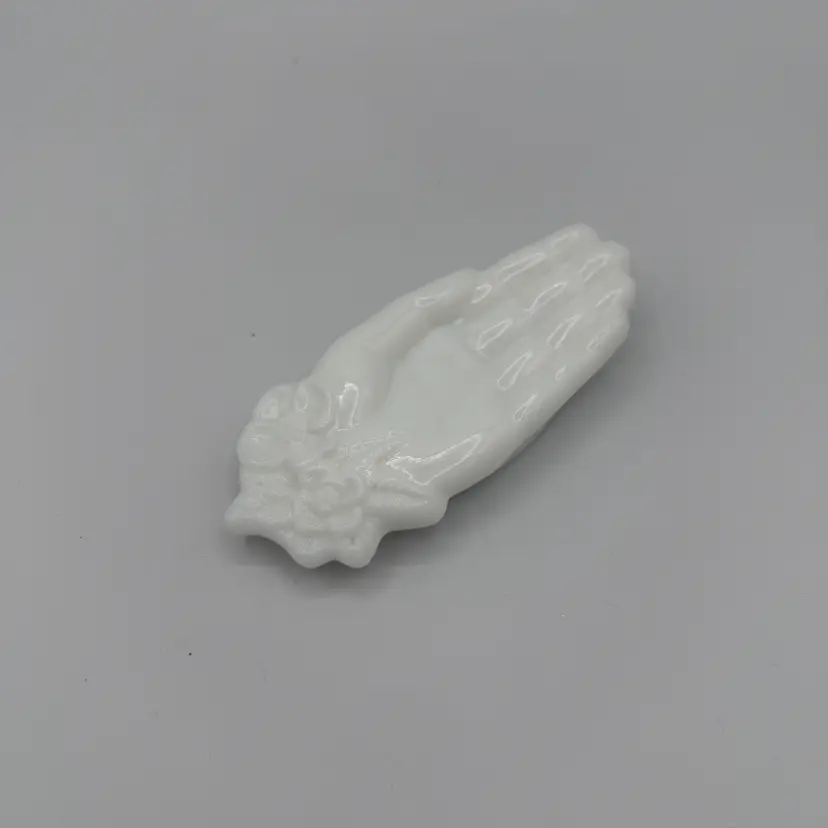 Vintage Avon Hand Shaped Trinket Dish. White Milk Glass with floral design on wrist. Victorian or Mid Century in style. No Chip/Cracks. 5" Length