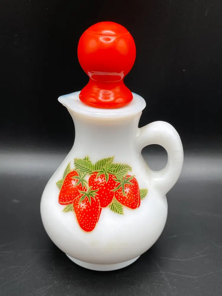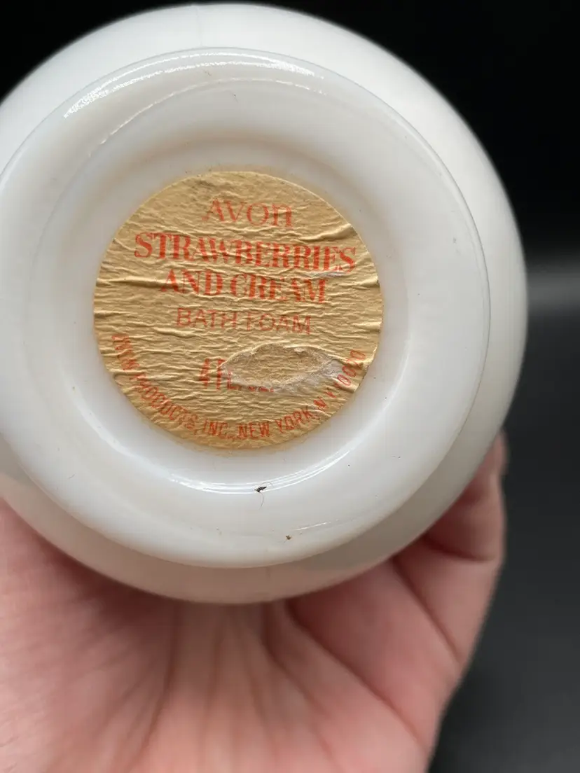 Vintage Avon Milk Glass Strawberries & Cream Bath Foam Decanter, Empty