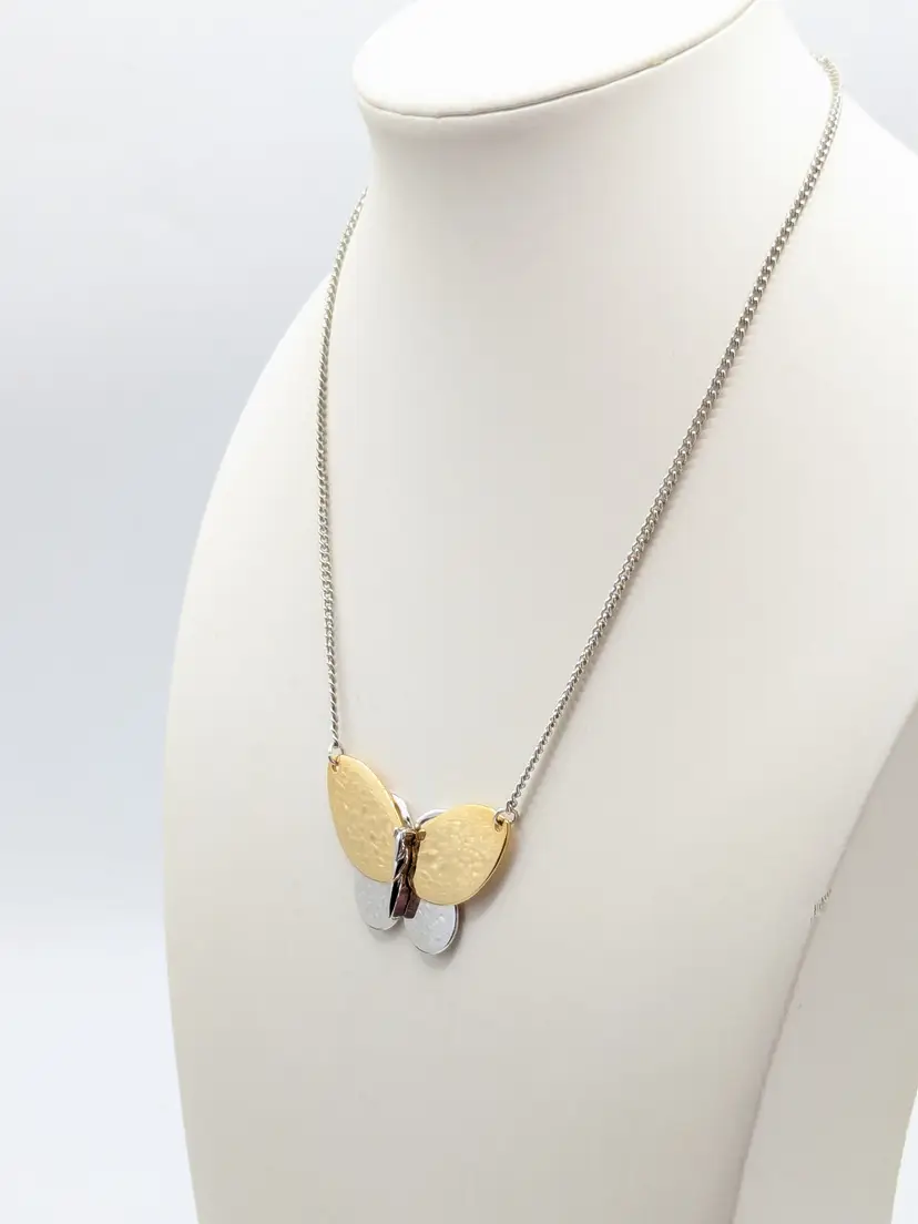 Vintage Avon Silver Gold Tone Butterfly Necklace