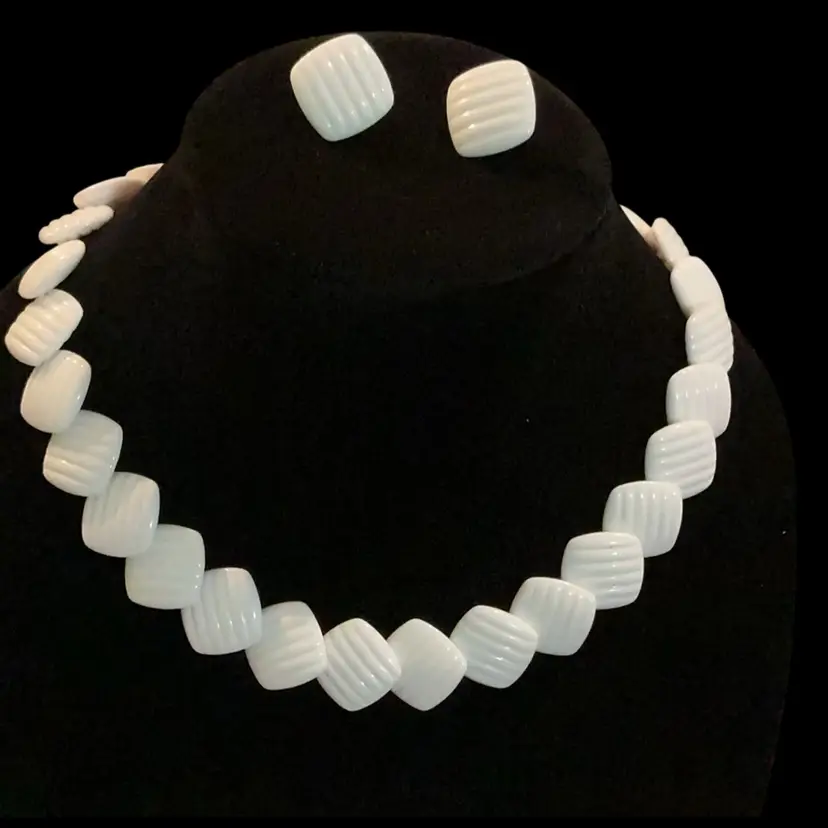 Necklace measures 18’ with Goldtone round spring clasp. Clip earrings measure 1’ Signed Avon.