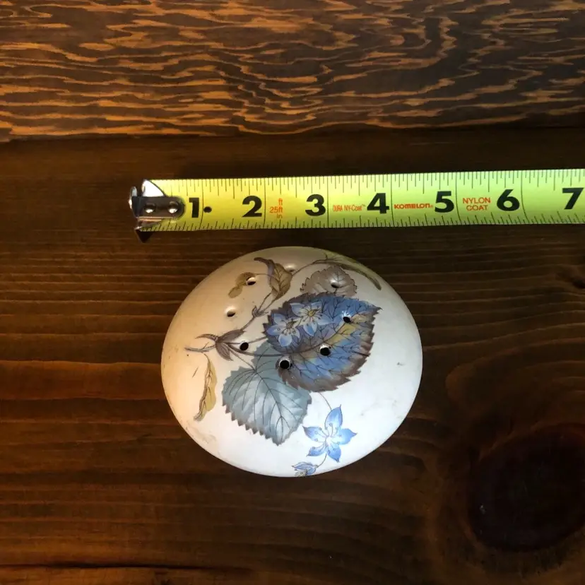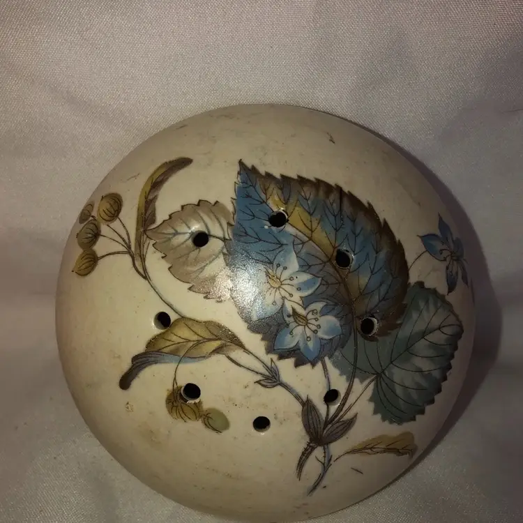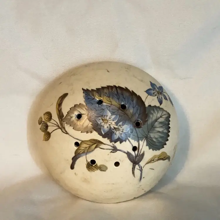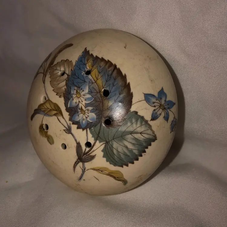 Beautiful blue flowers and leaves on this unique potpourri pomander. Cork is intact.