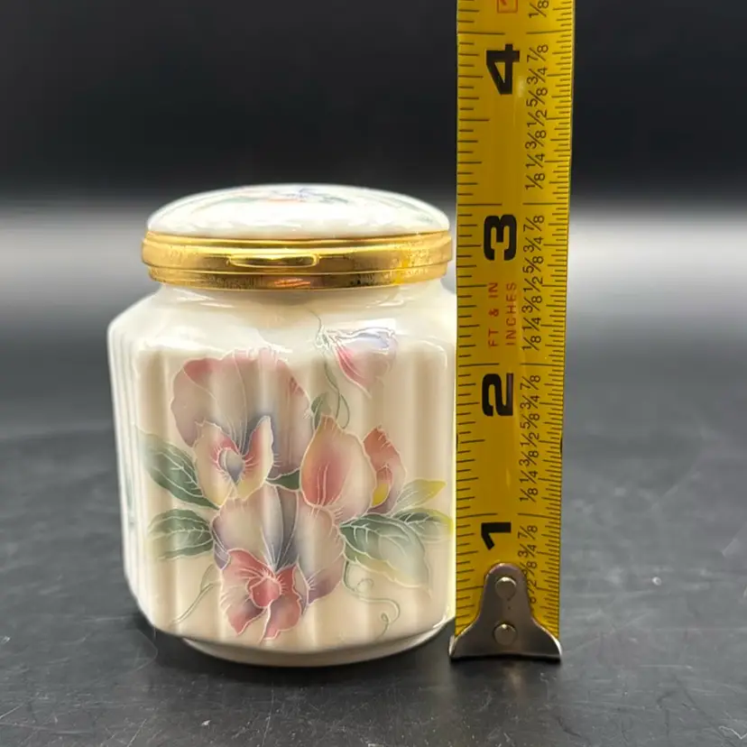 Measurements: Height (w/ Lid) 3.25” inches Diameter 2.5” inches Rim 2” inches