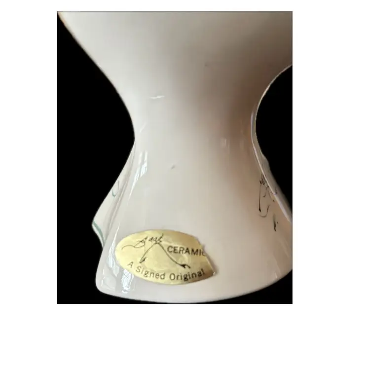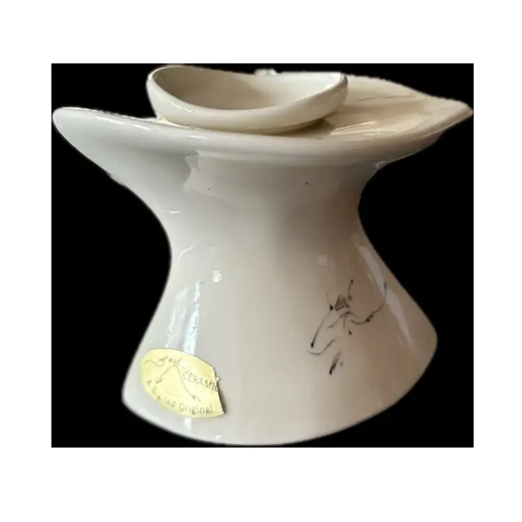 Vintage Barbara Baatz ceramic candlestick holder Hand painted floral design Original sticker Signed No chips or cracks seen