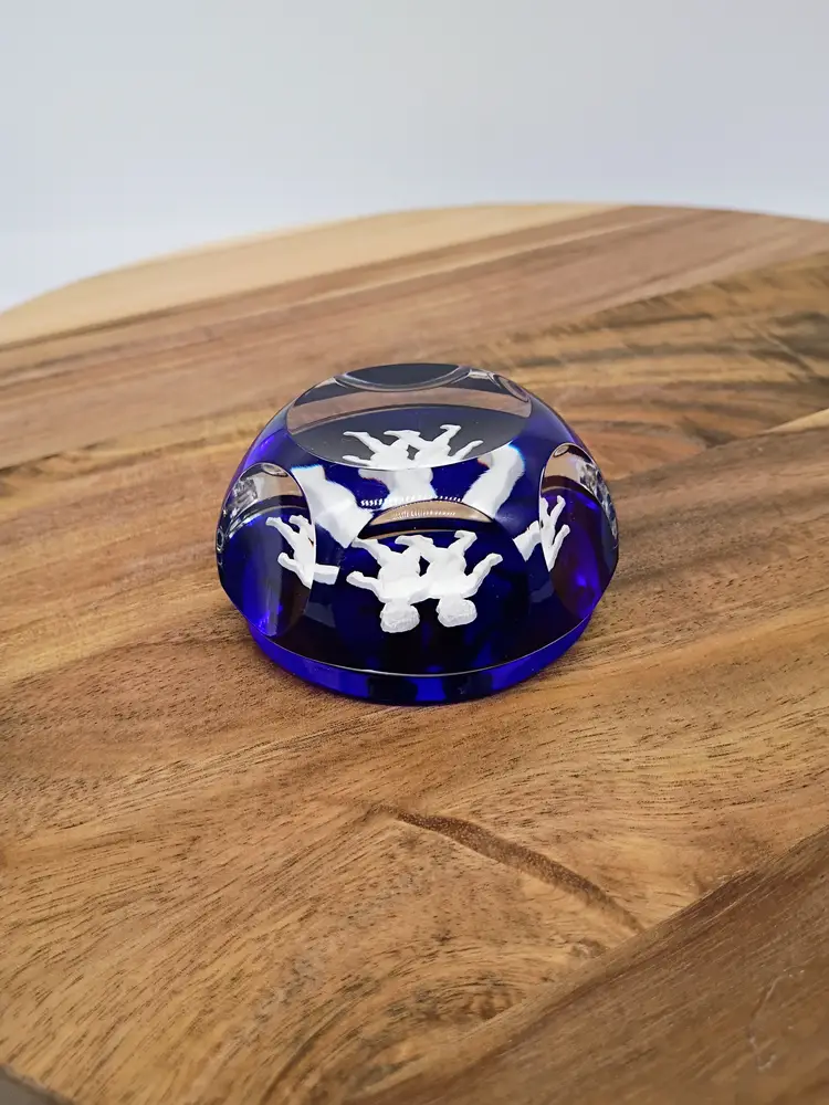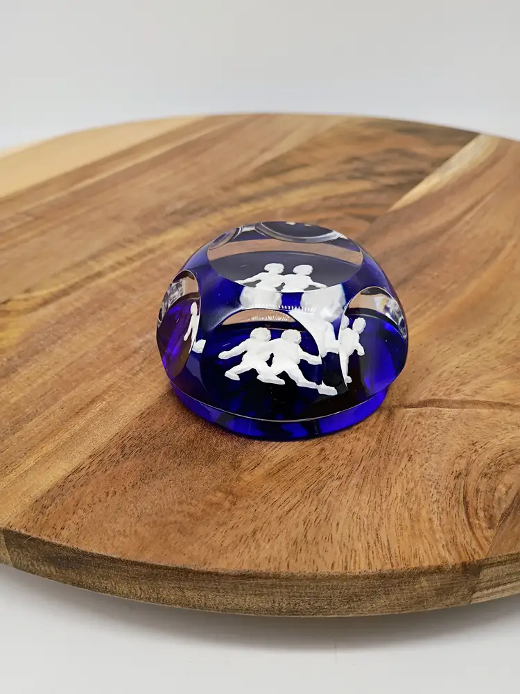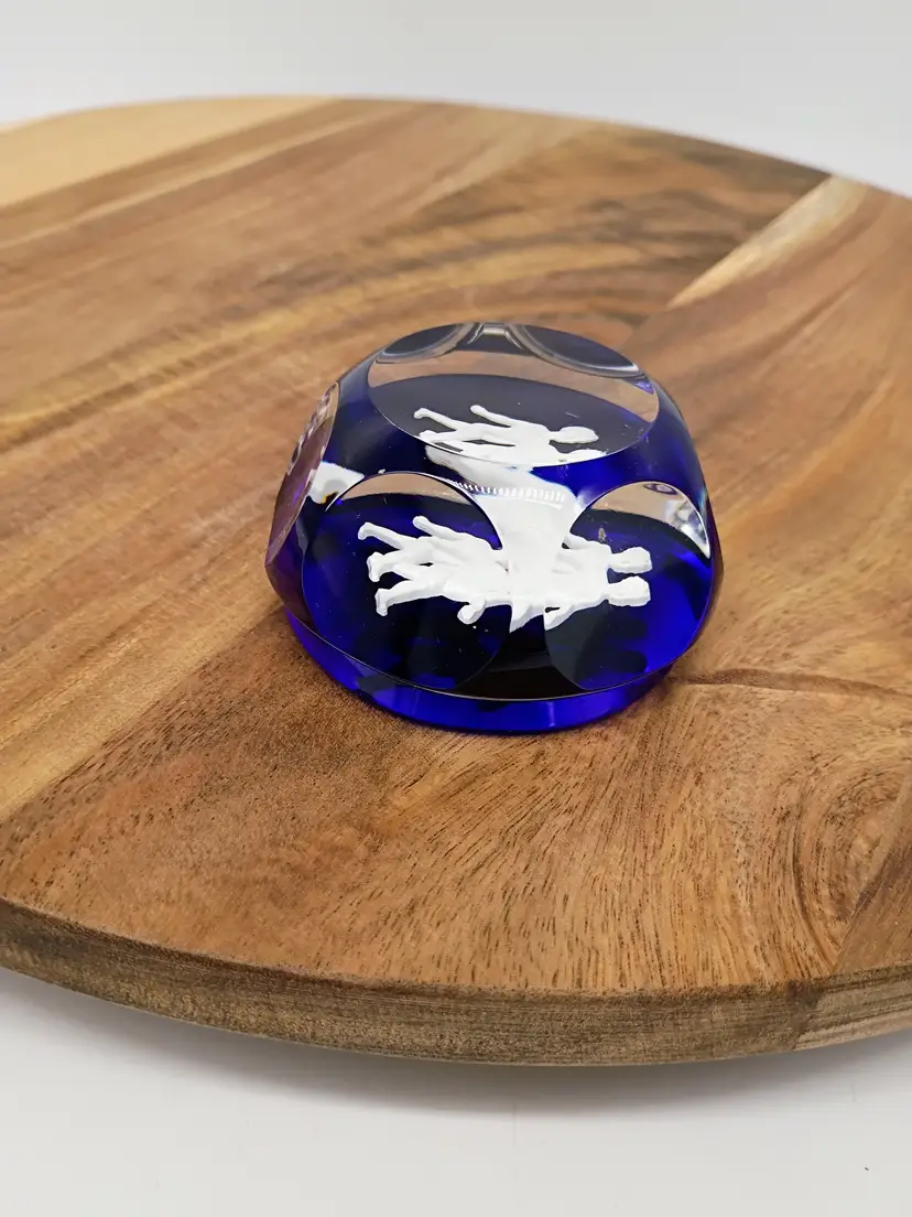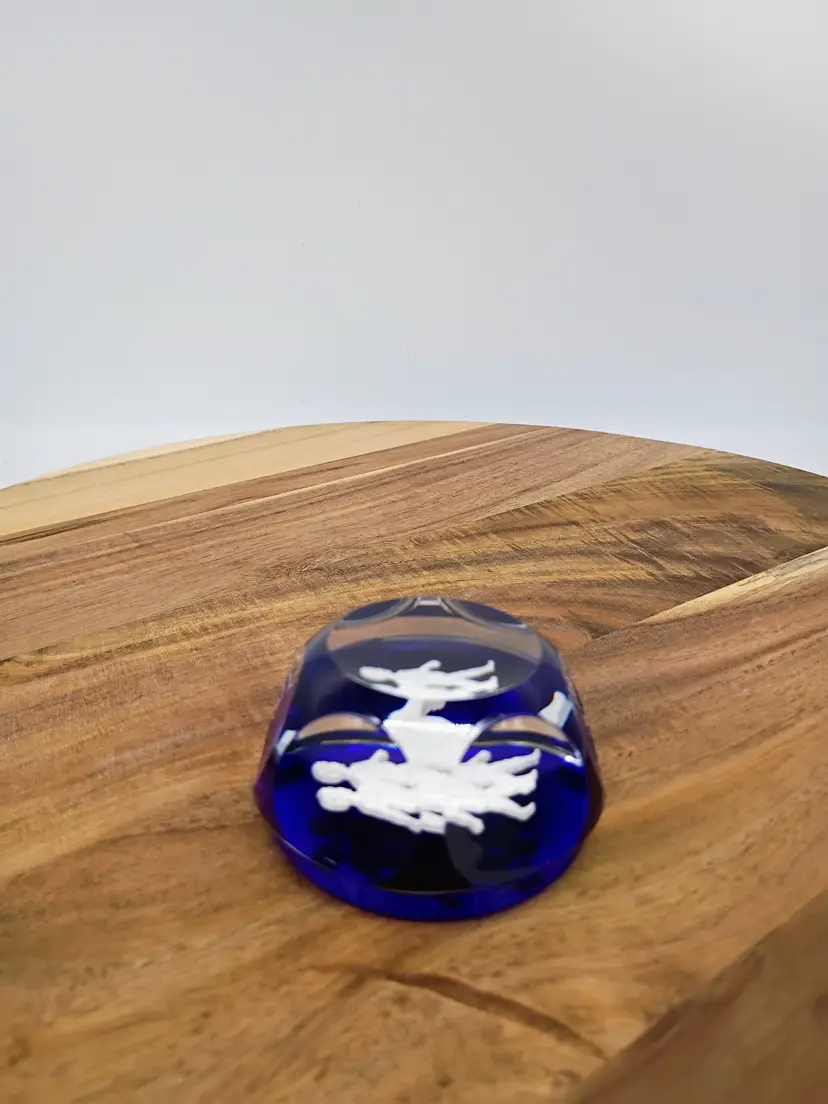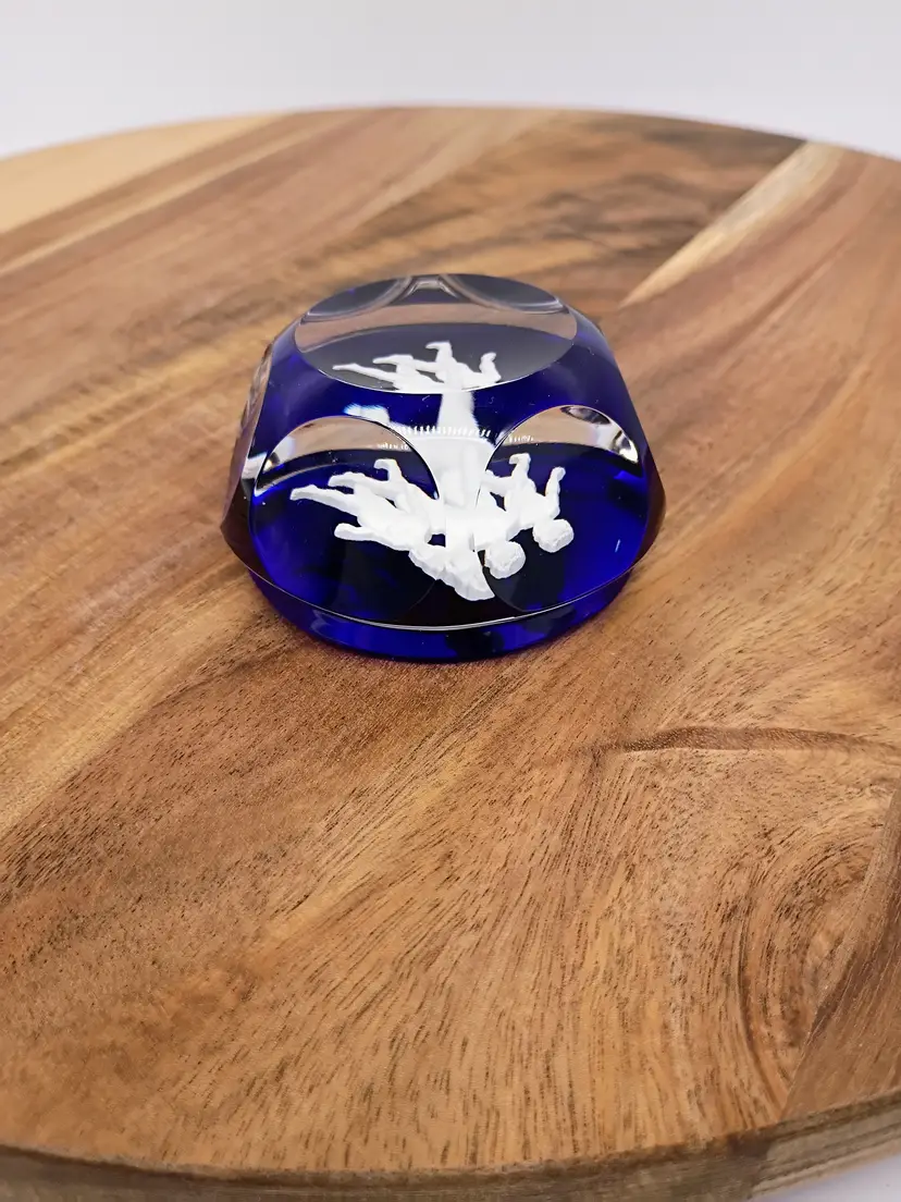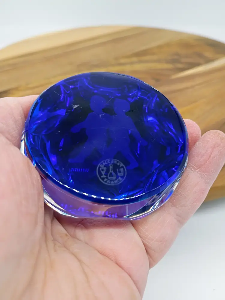 Vintage Baccarat Faceted Sulphide Cobalt Blue Base Crystal Paperweight Gemini Twins Circa 1990's, This is 2.5 inches in diameter just under 2 inches in height. This is preowned, No chips cracks flea bites or bruises/ internal fractures. Light marks on underside this is normal when glass sits on a shelf for any significant length of time. Does not have original box. Excellent condition. Ships USPS