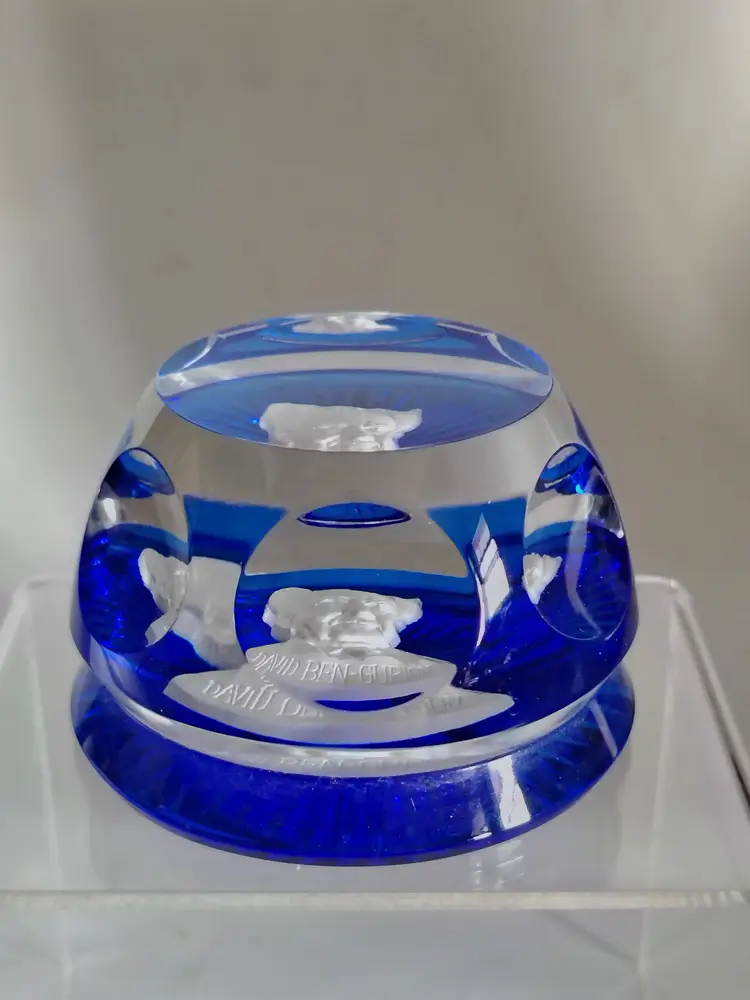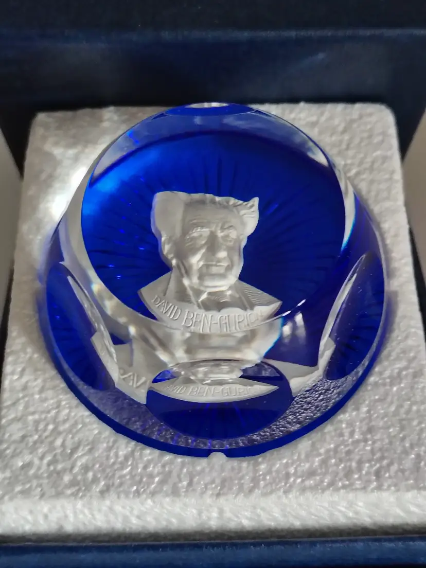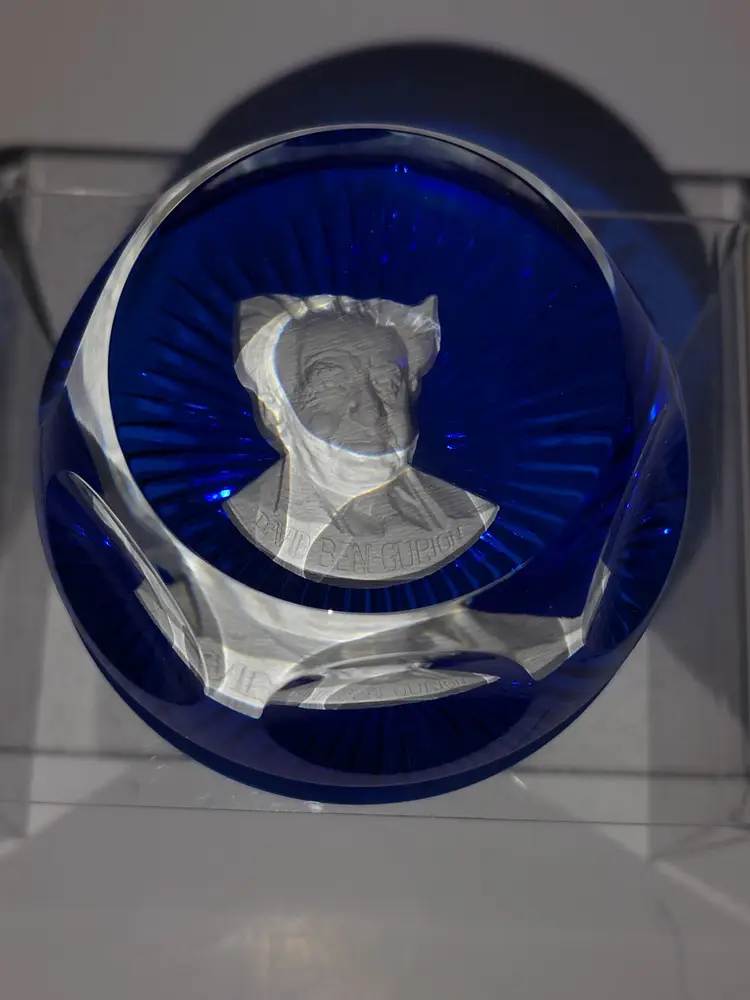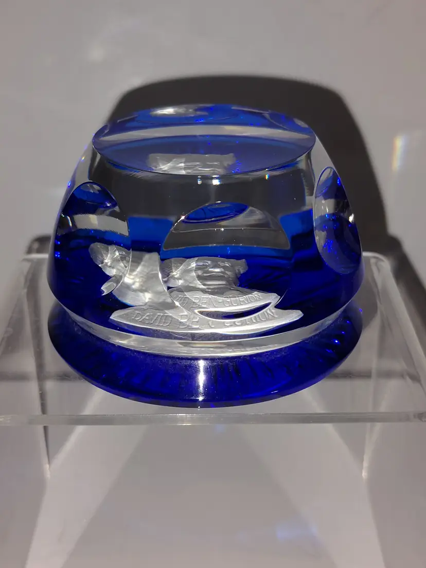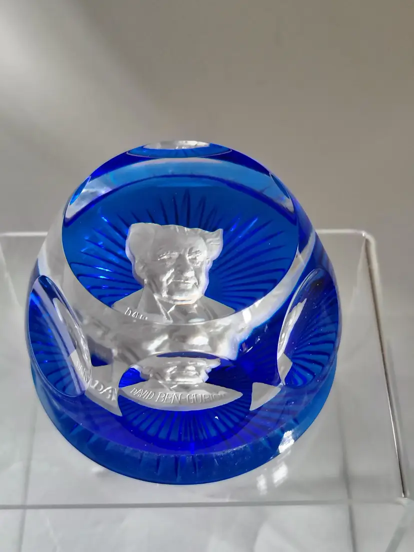 This Baccarat series, 'The Great Leaders of History', is well known, and produced late 20th C, with the sulfides entrapped in the fine clear, faceted and polished crystal with a cobalt blue colored bottom. I have the first 12 of the series and each are sold separately. These are all in PERFECT CONDITION and were in the original inner box and shipping boxes since purchased, but removed now to take pics. This is 6 and is David Ben Gurion and was made in 1979. Measures Approx: 2.90" Wide x 1.80" Tall.