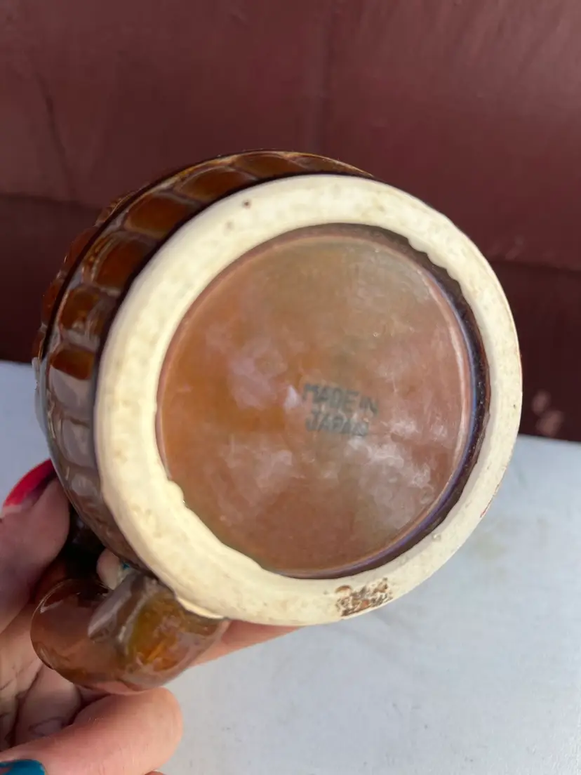 This is so cute! Reminds me of cartoons when I was a kid. No chips or cracks. 4” tall 3” circumference. Made in Japan.