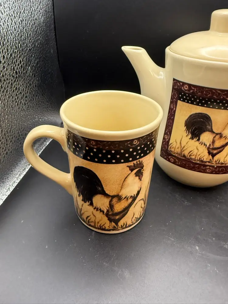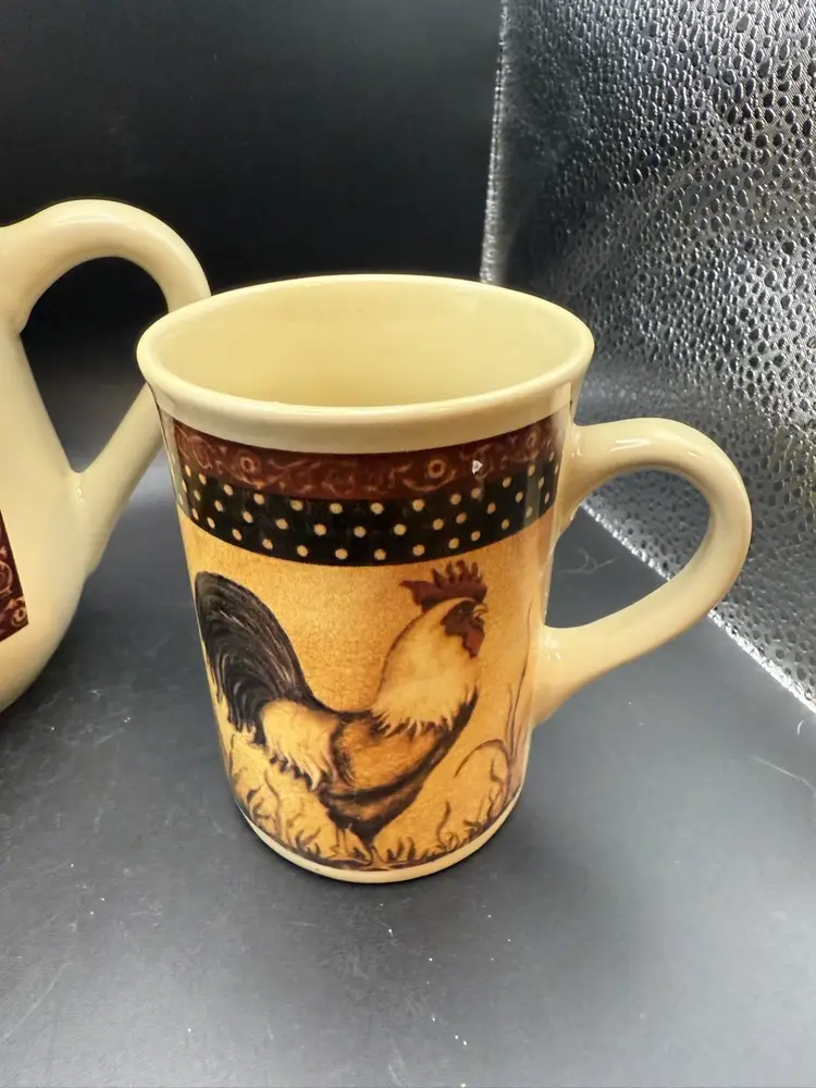 This particular set, with its prominent rooster design, aligns with the popular country and farmhouse decor trends that gained significant traction in the 1980s and 1990s.