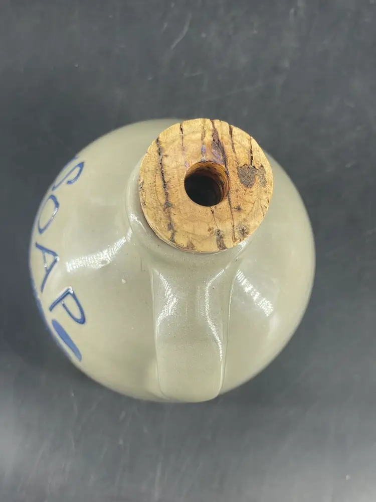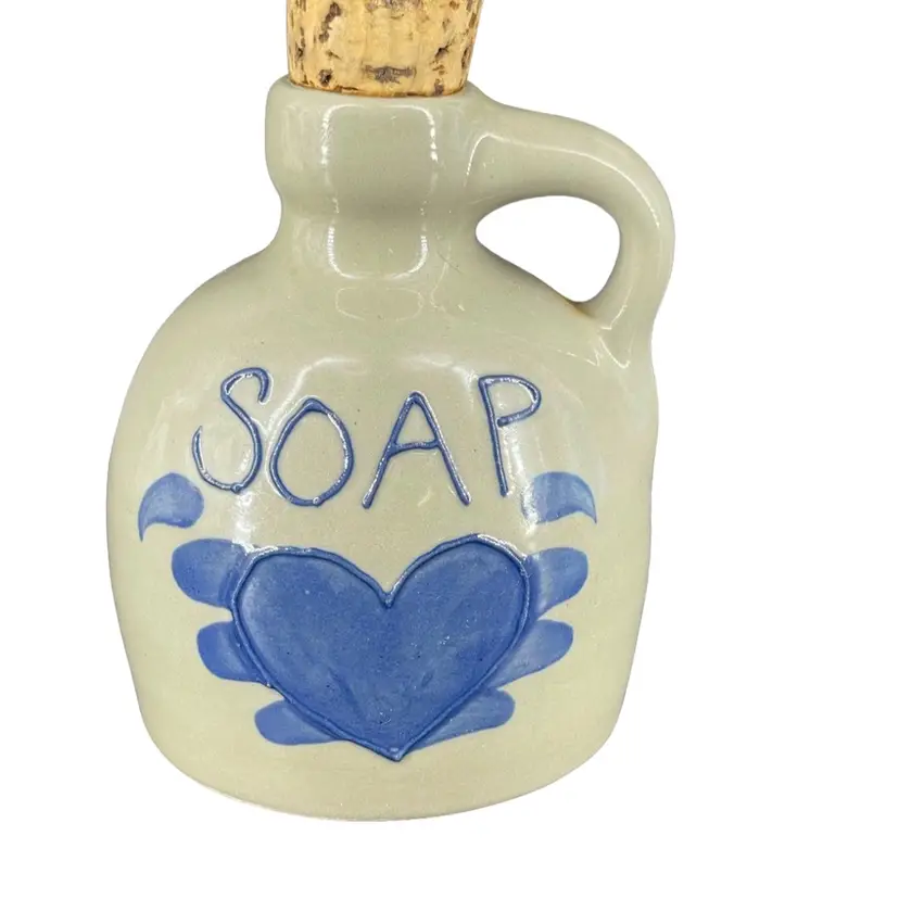 measures 4.75" tall to rim 3.5" wide no chips or cracks missing the pump, which can be easily replaced