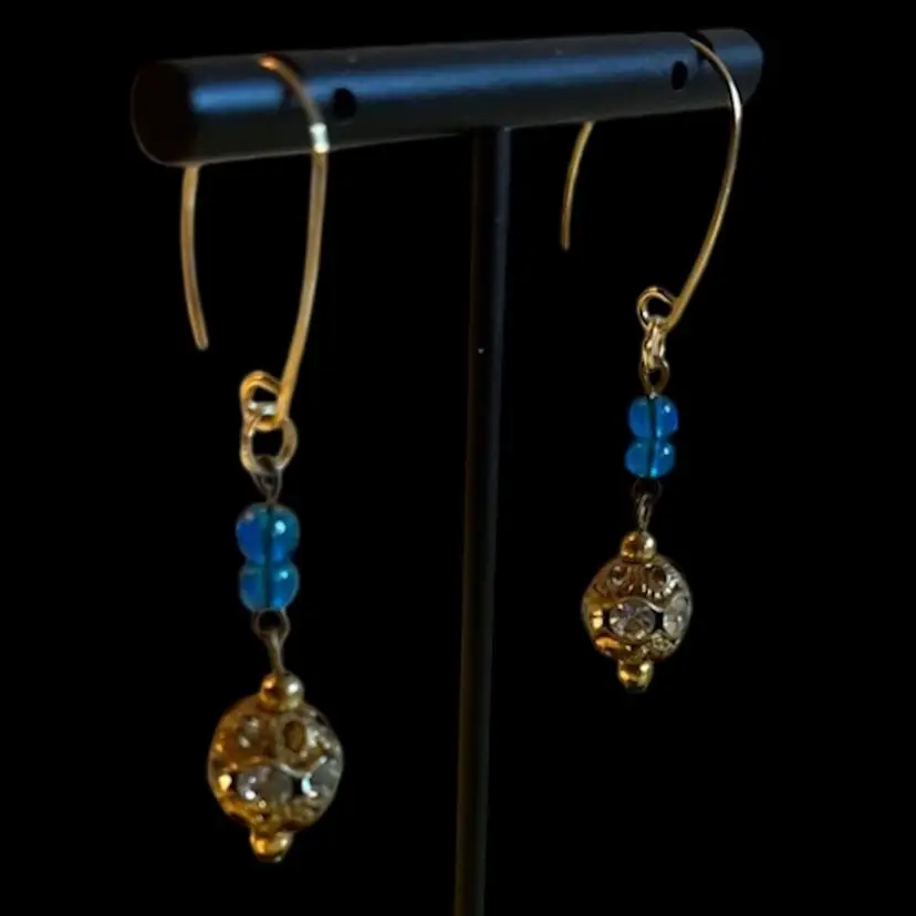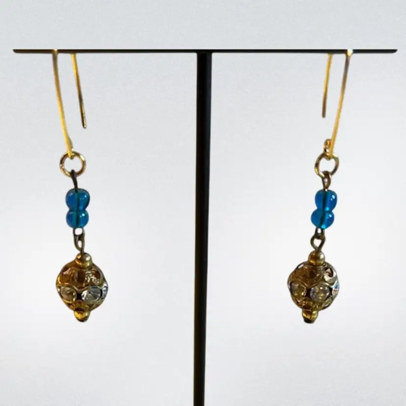 Beautiful sparkly vintage beaded earrings that I have converted from screw backs to pierced U hooks (18k plated over copper). 2” long and I can send the original screw back components if you’d like.