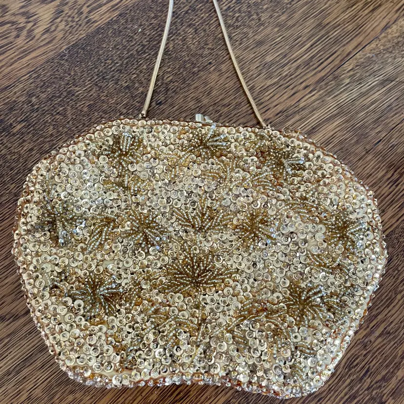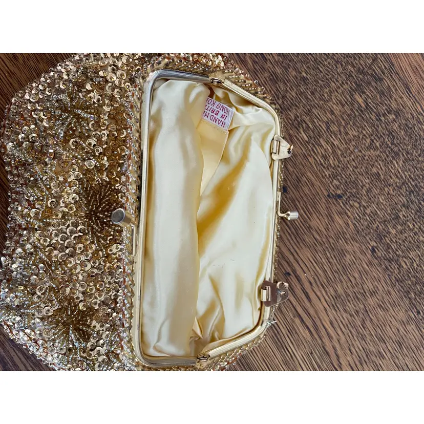 Vintage Beaded and Sequined Clutch Purse in Gold 8 1/2" x 6" Made in British Hong Kong Smoke and Pet Free environment Thank you for shopping with me!