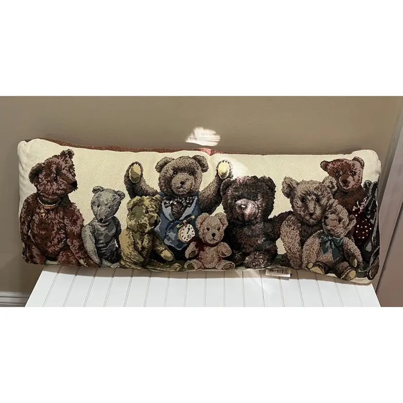 Dakotah Decorative Pillow w Ten Teddy Bears Tapestry & Brown Fabric Back 33 x 12
