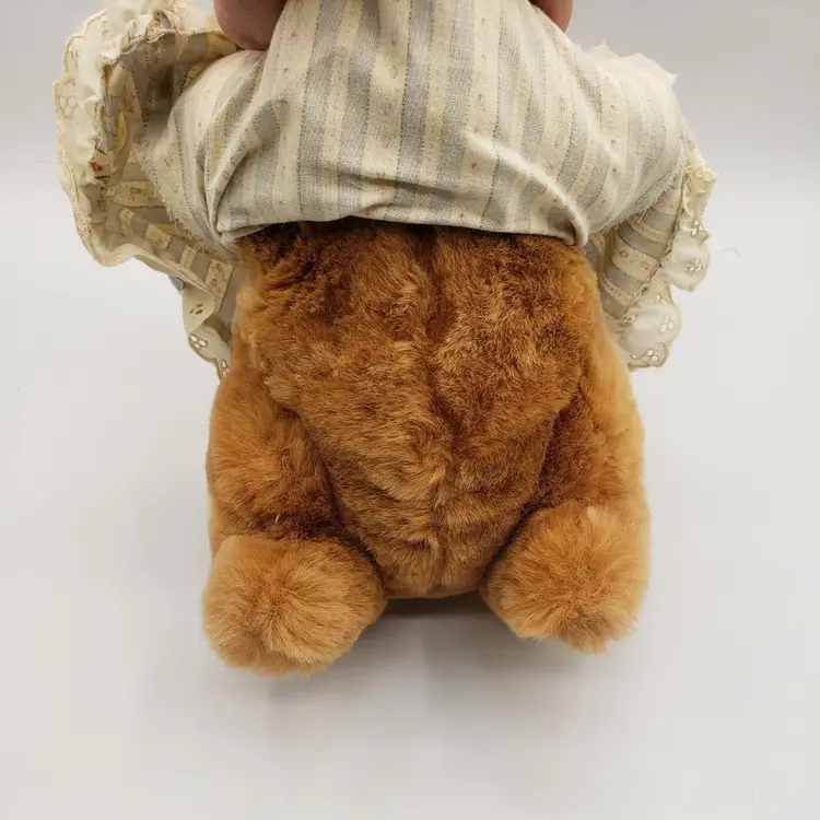 Vintage Beatrix Potter Peter Rabbit Eden Toys Frederick Warne Korea 12" Easter. Made in Korea for Eden Toys, New York. Measures 12" tall. Wearing a dress "Mrs. Rabbit". Light stains on dress. One side of the whiskers is shorter than the other. No rips or odors. Non-smoking home. Adorable!