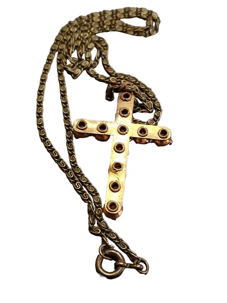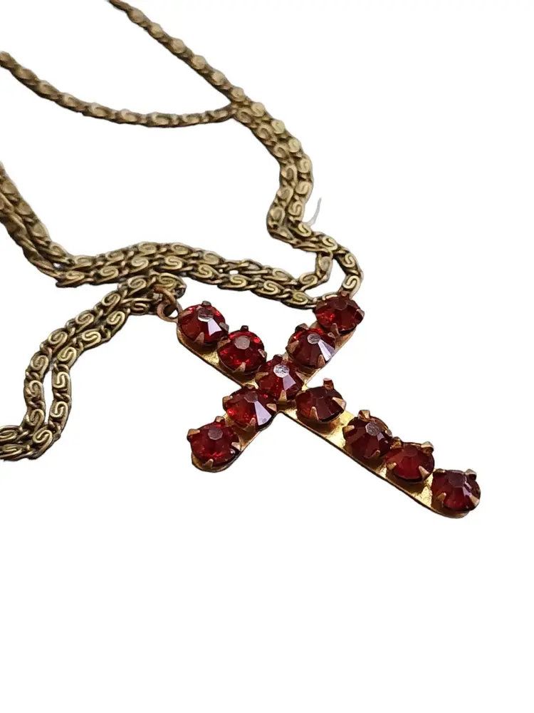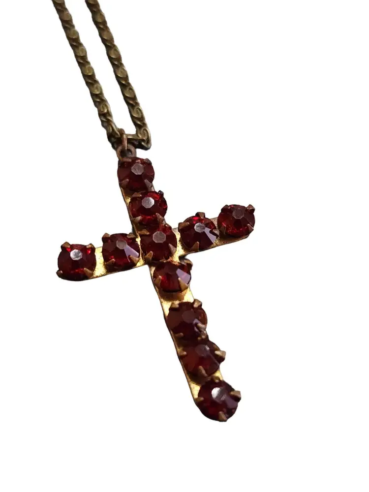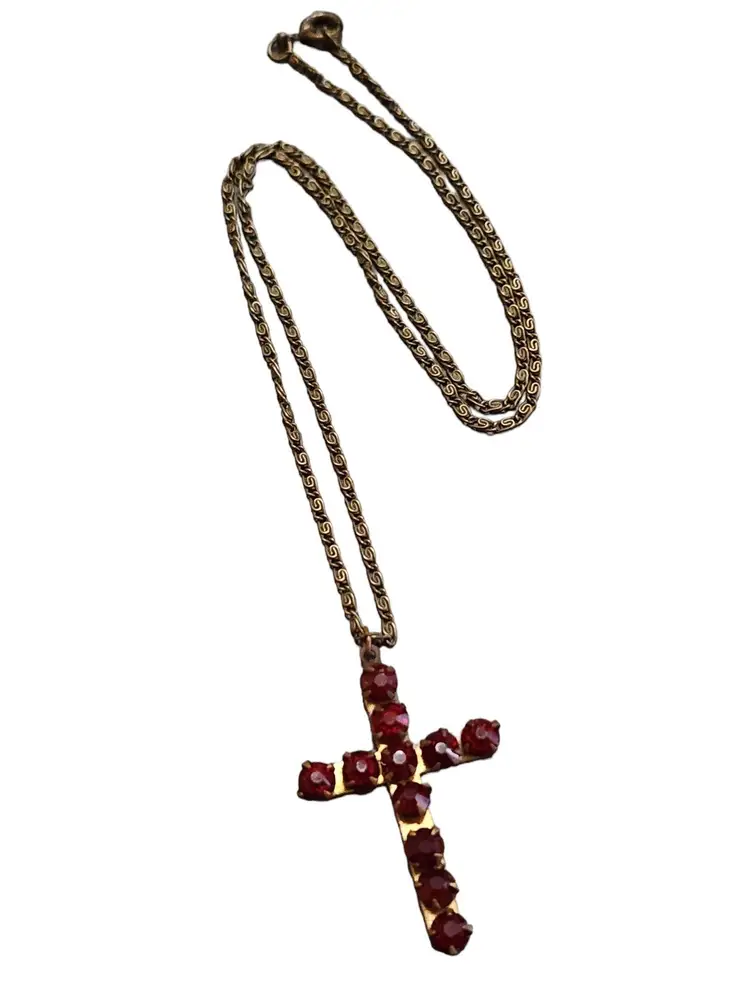 Vintage Beautiful Probably Czech Rhinestone Cross Pendant Necklace (A4437)