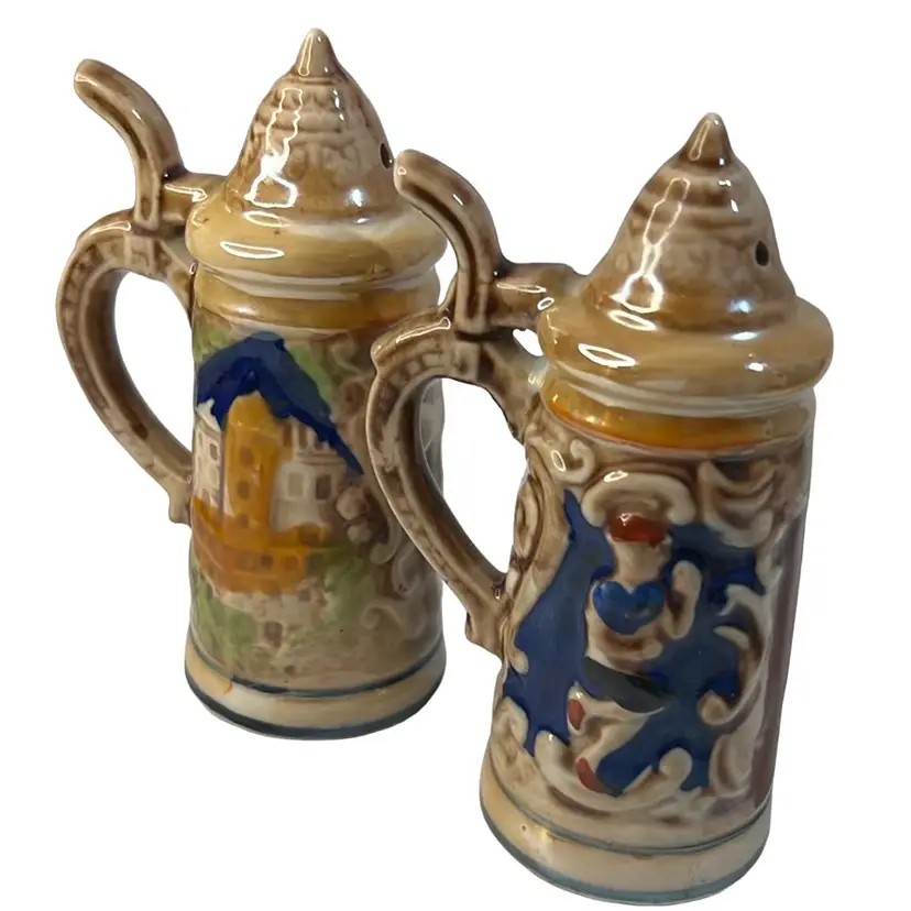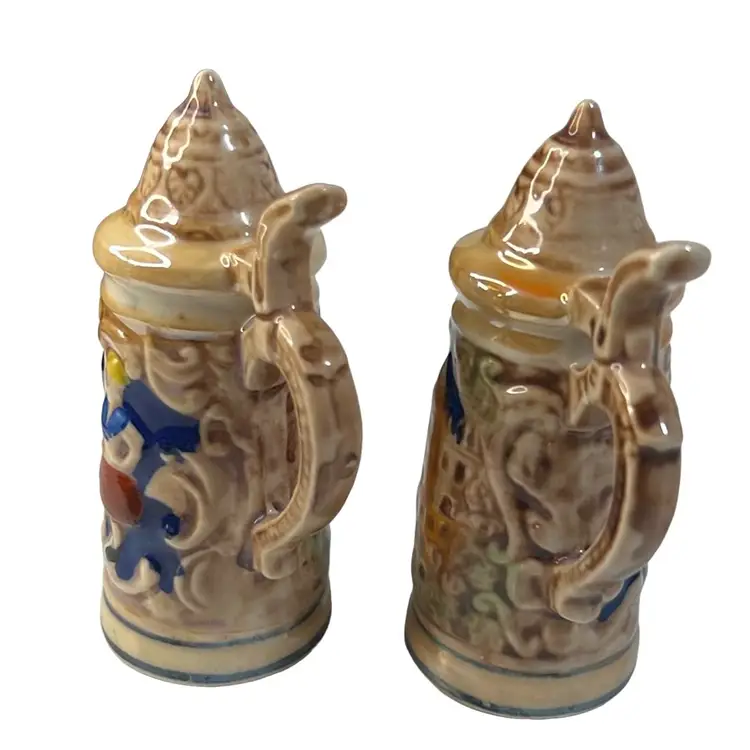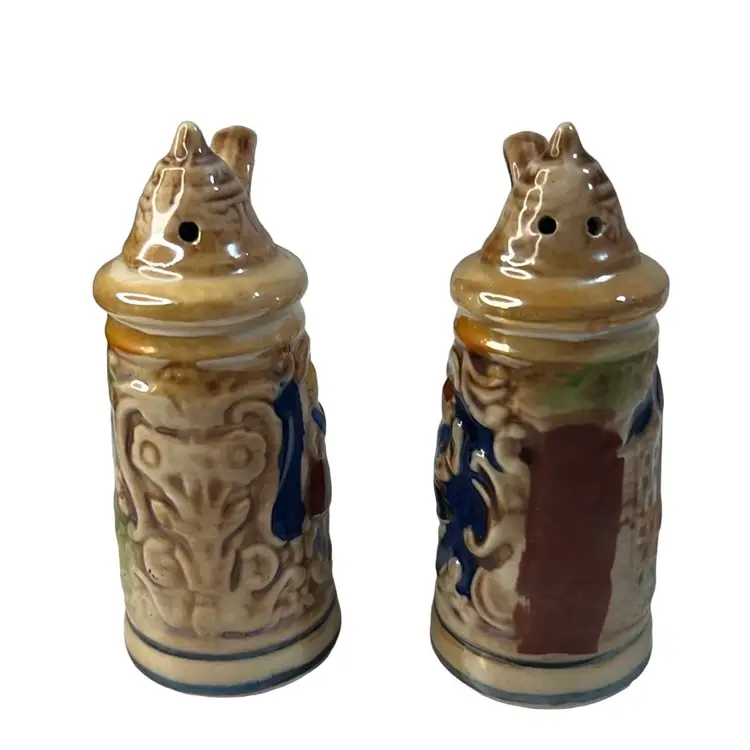 Mick German beer stein salt & pepper shakers. Hand painted. Great condition no chips or cracks. Marked Japan.