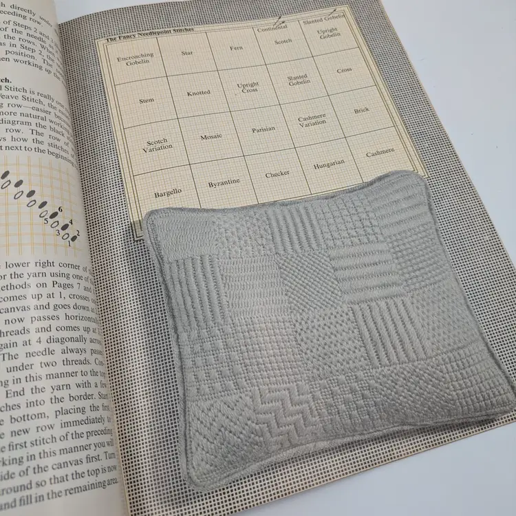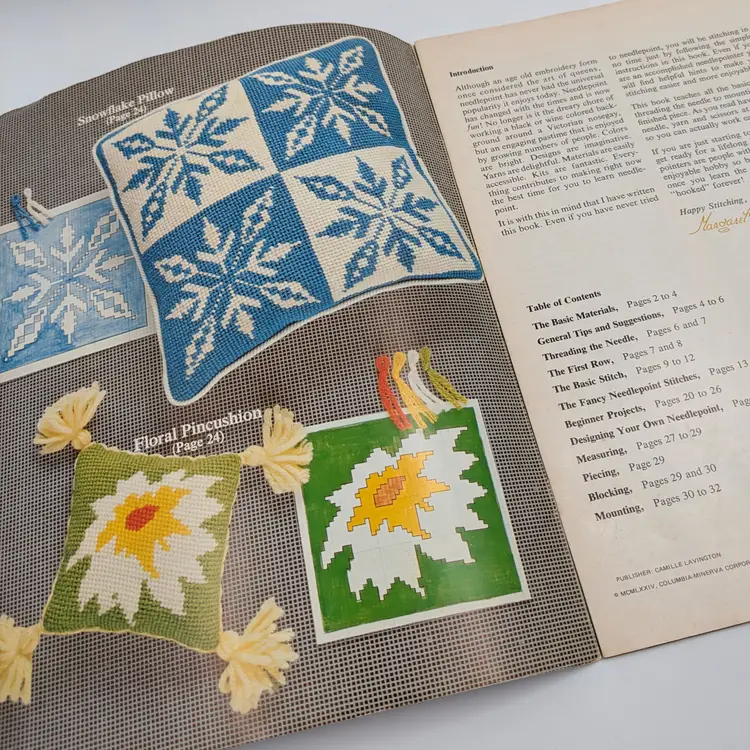 Explore the art of needlepoint with this vintage Columbia-Minerva Beginner's Needlepoint Book. Featuring 24 needlepoint stitches and instructions for 8 projects, this guide by Margaret Boyles is perfect for both beginners and enthusiasts. A charming addition to any craft collection.