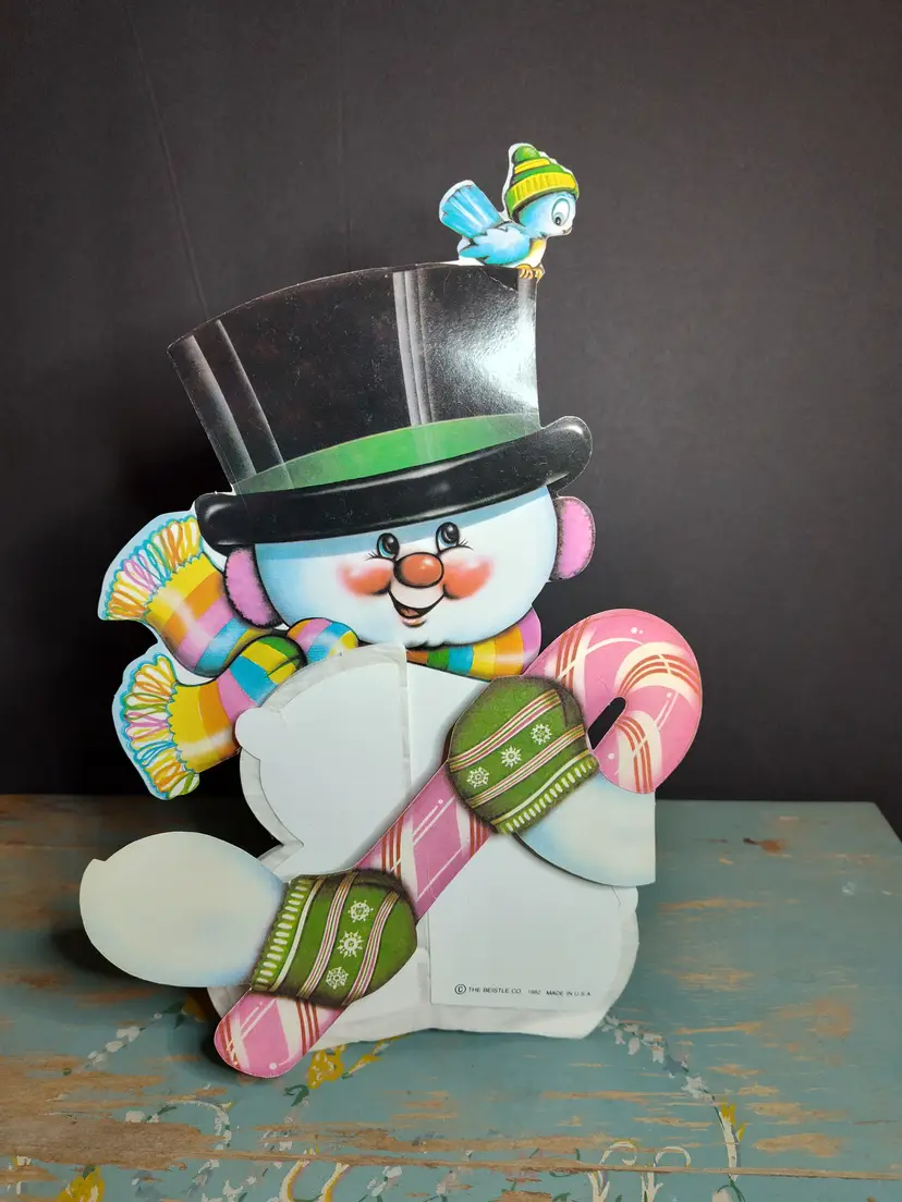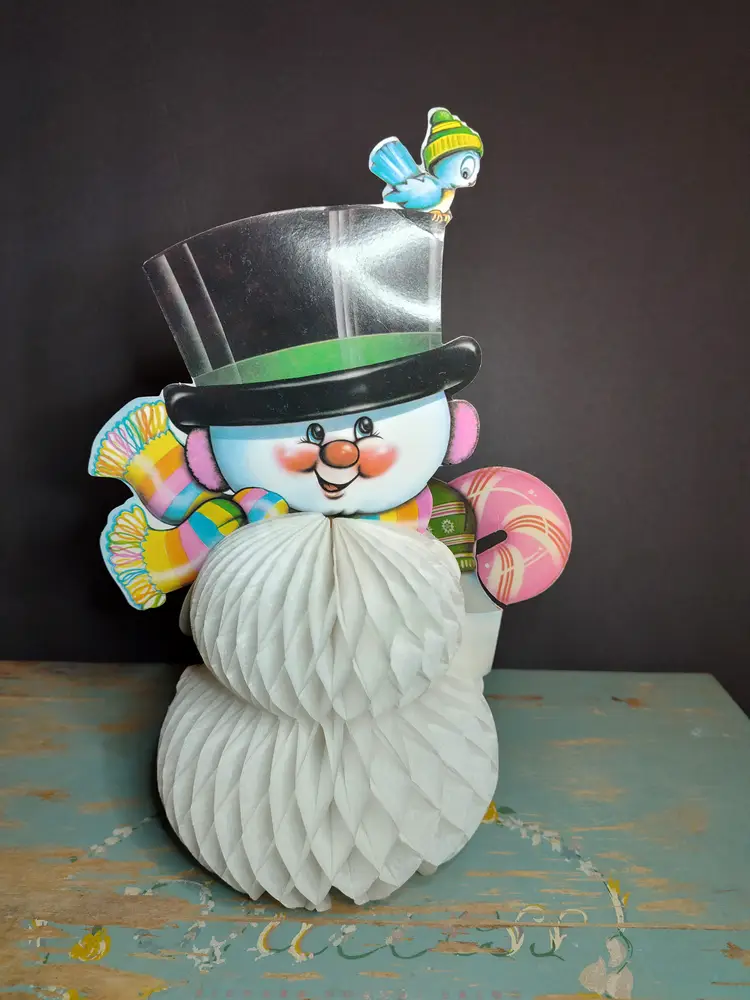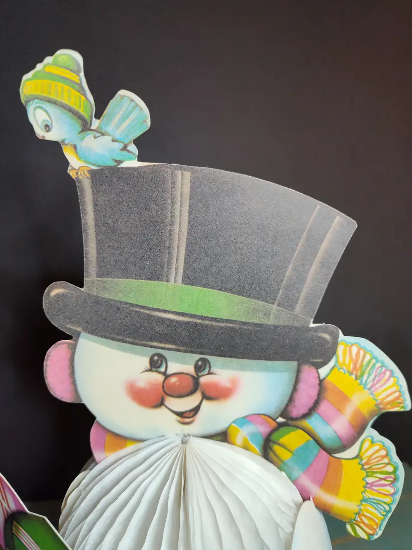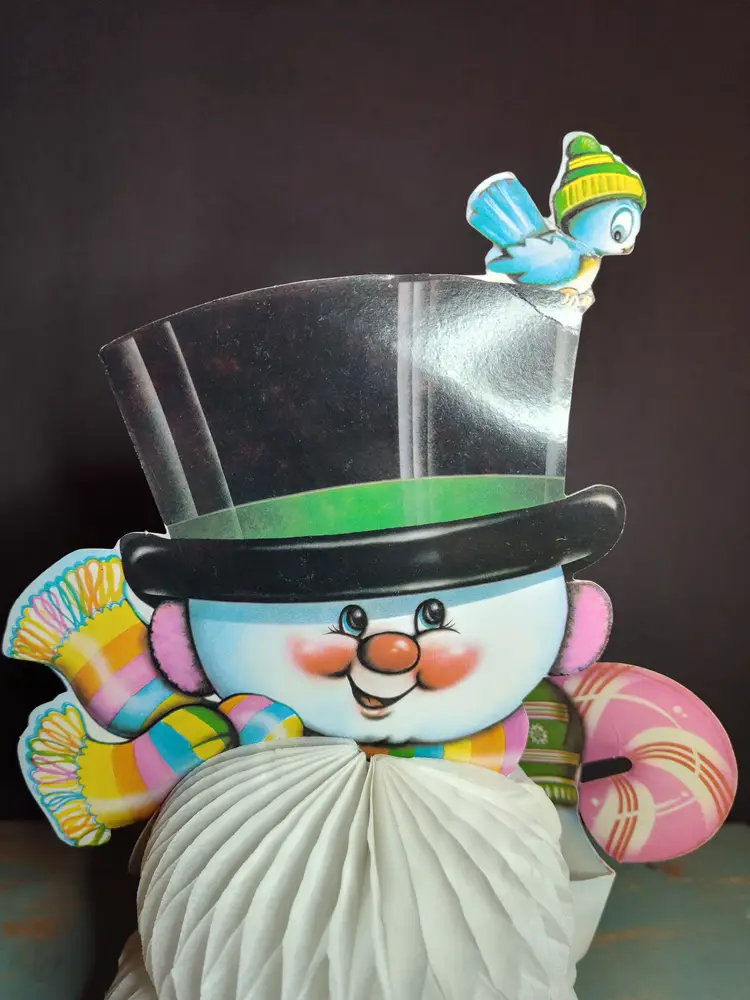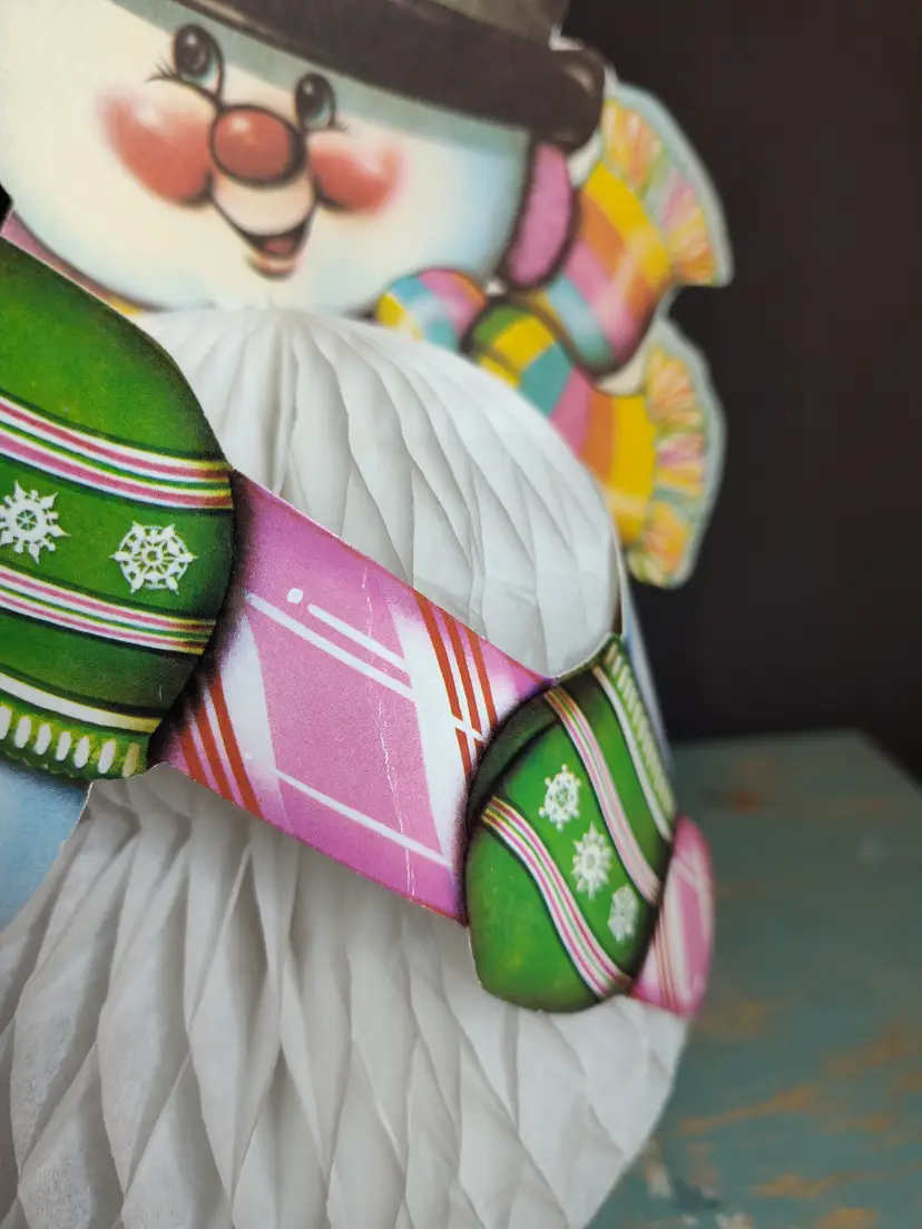 Vintage 1982 Beistle double sided honeycomb snowman - folds flat.