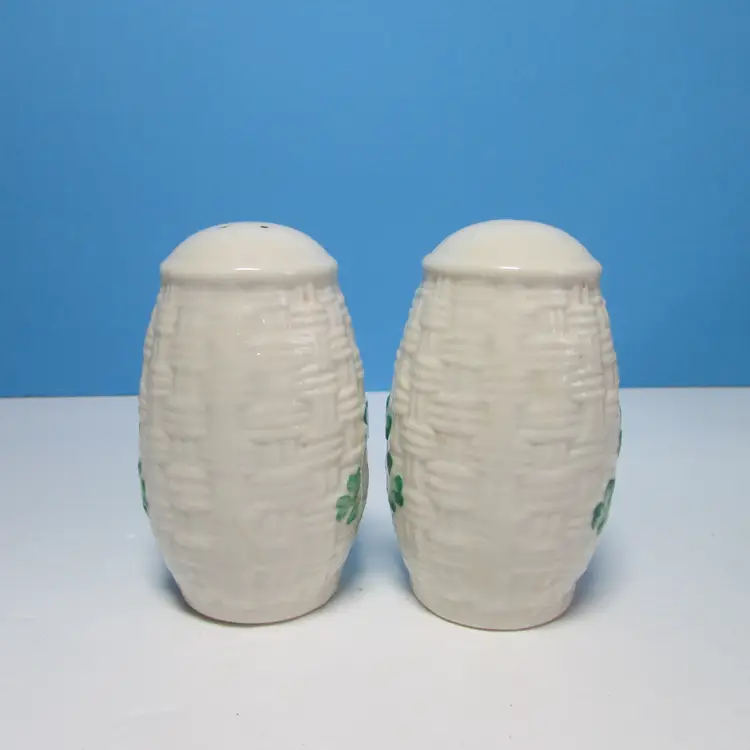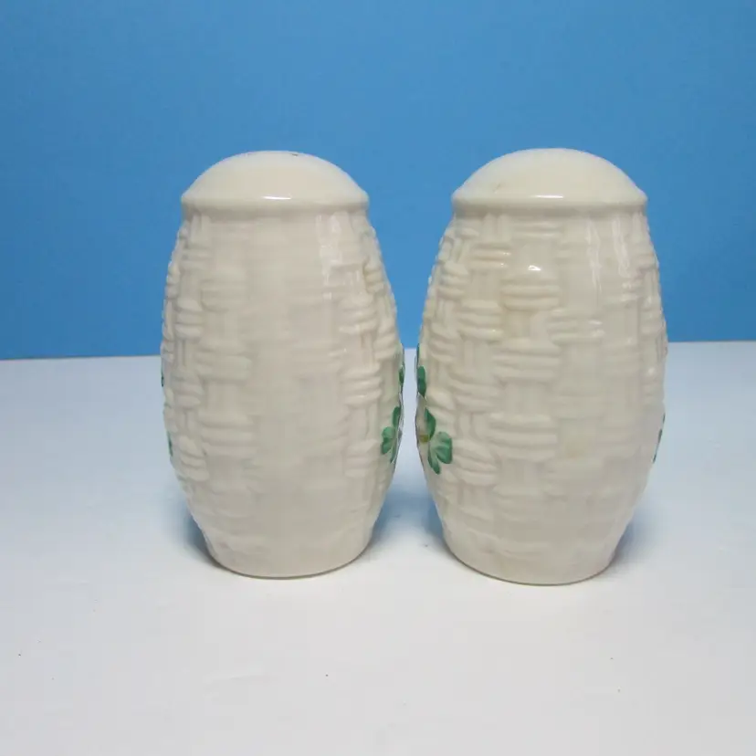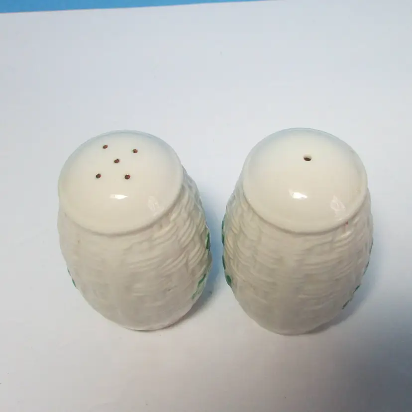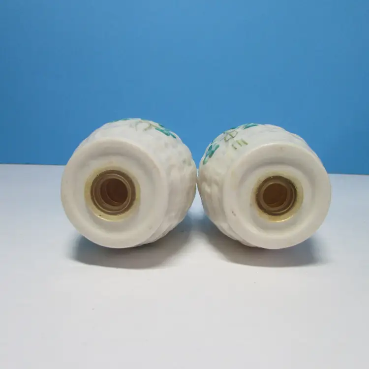 This lovely set of shakers has some slight wear, there is some discoloration on the stoppers. Each is about 3 1/2" tall. This is shipped from a smoke free home. Thanks for looking!