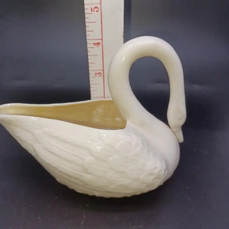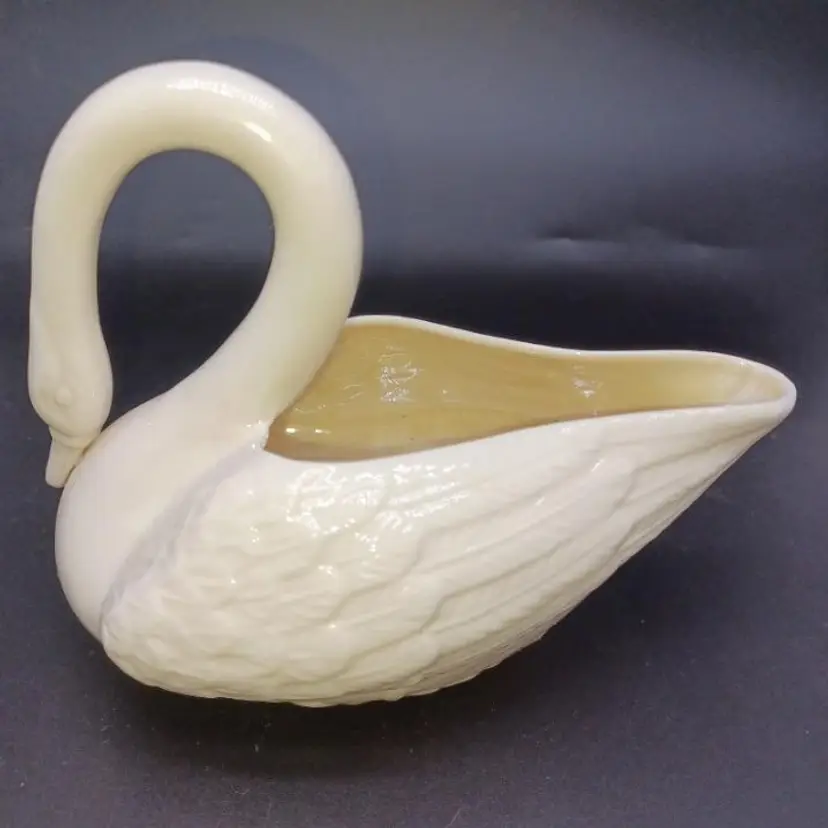 Vintage Belleek Swan Creamer beige luster interior MARKS: Green logo / Reg No0857. Fifth mark (1955-65) In great vintage condition no chips cracks Etc does have a black spot inside and the luster but it is part of the manufacturing process please see all pictures as they're the best description all items from a smoke-free home with pets experience fragile shipper please take a look at my other items for sale as I will gladly bundle and combine to help you save on shipping especially with Mercari's new bundling feature #Belleek bx shd