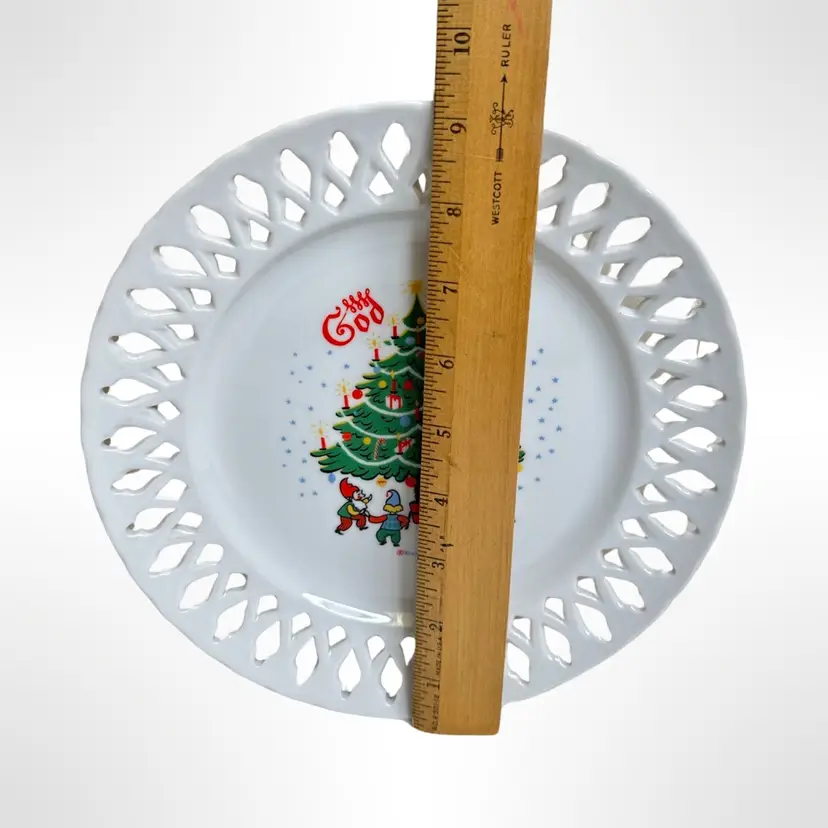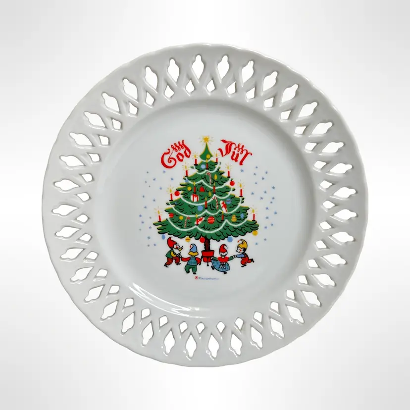 Vintage Berggren Reticulated Tomte Gnomes "GOD JUL" Christmas Plate Sweden