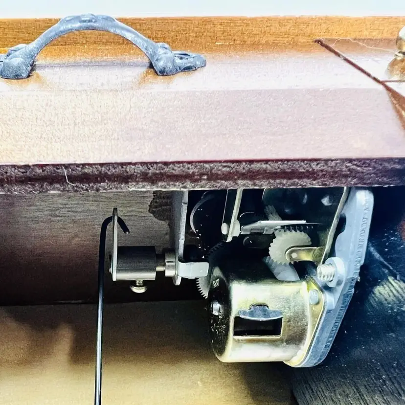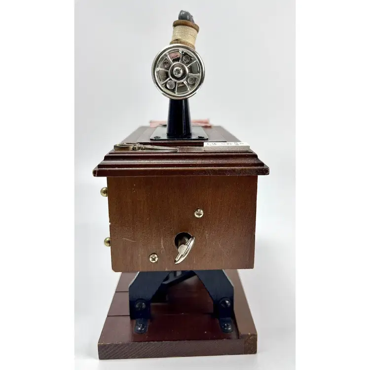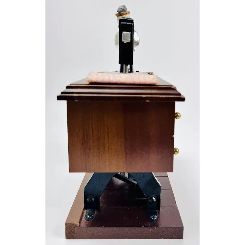 This item is in fair vintage condition. Some surface scratches to the wood. No missing pieces. The pedal does not move up and down with play. The mechanism works, but does require a bit of manipulation occasionally. Needs a bit of work to play consistently every time. See all images and video for details. Measures 8 1/4" tall by 6" wide by 4" in depth. Weighs 1lb 5oz.