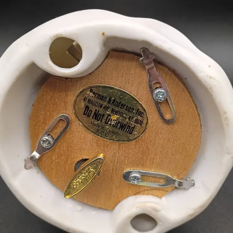 There are no chips or cracks to this lovely item and the music box is in working order.