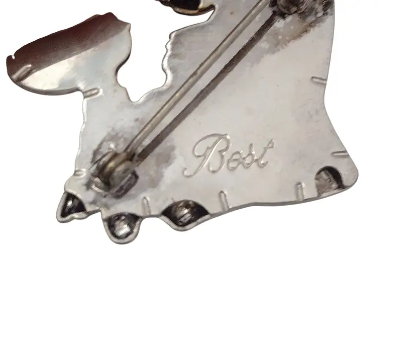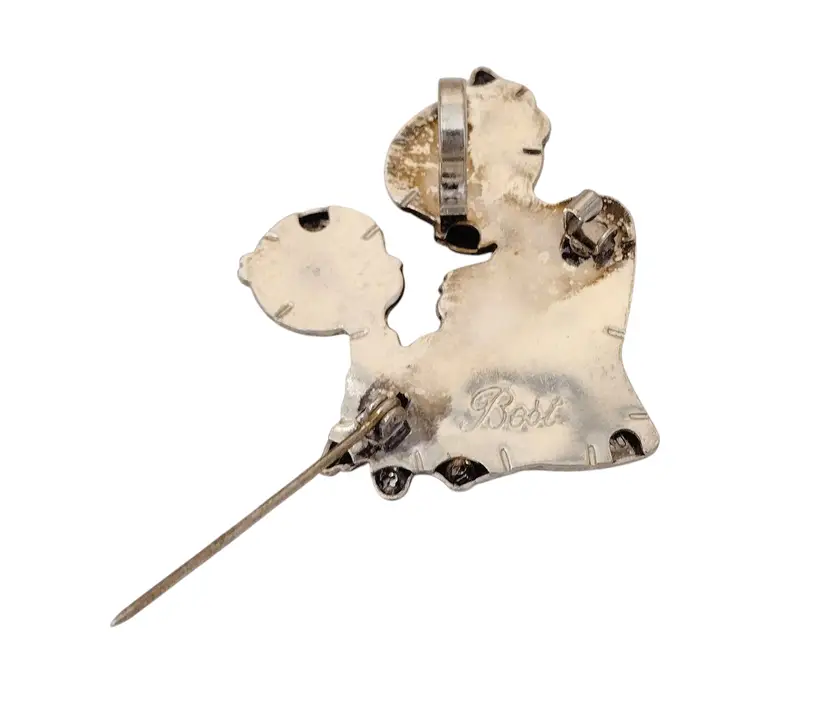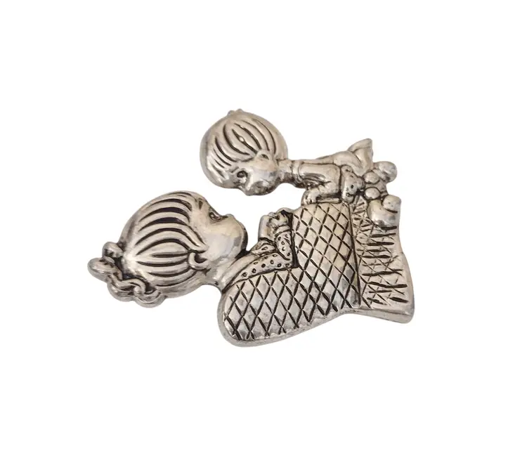 This is a sweet brooch or pendant of a boy & his Mom (or Grandma) sharing a special moment. Brooch measures 1.5" long x 1.99" tall.