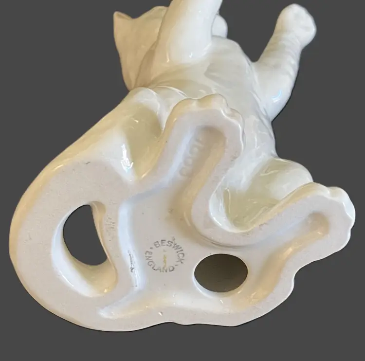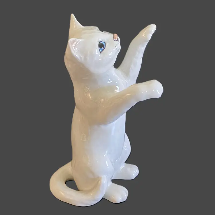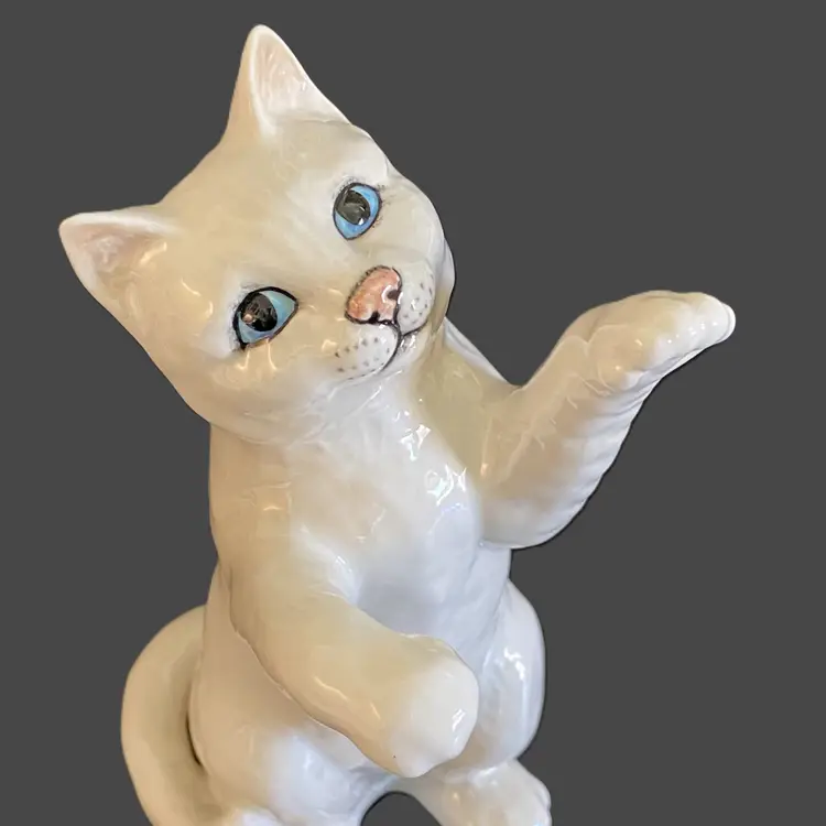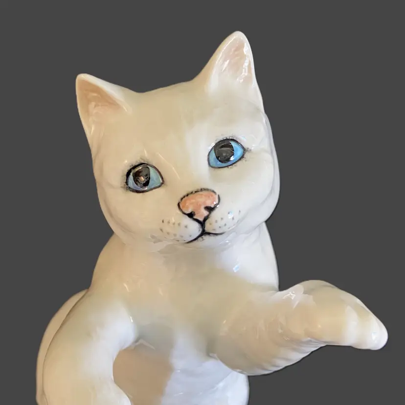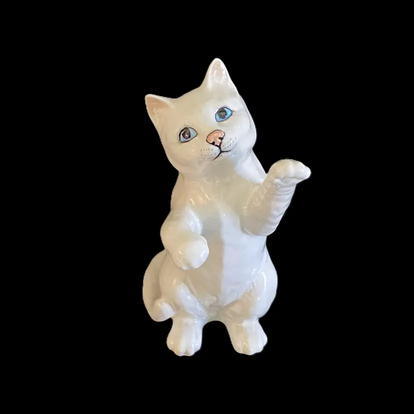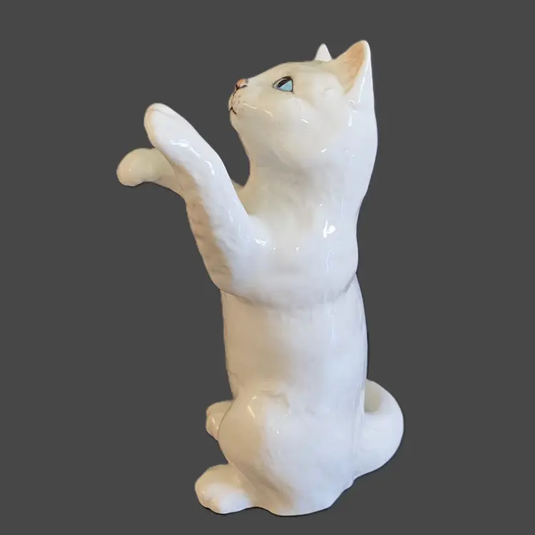 Vintage Beswick porcelain cat / kitten figurine. Beautiful white kitty with blue eyes, sitting on his hind legs with front paws raised. #1883 from the 1960s.