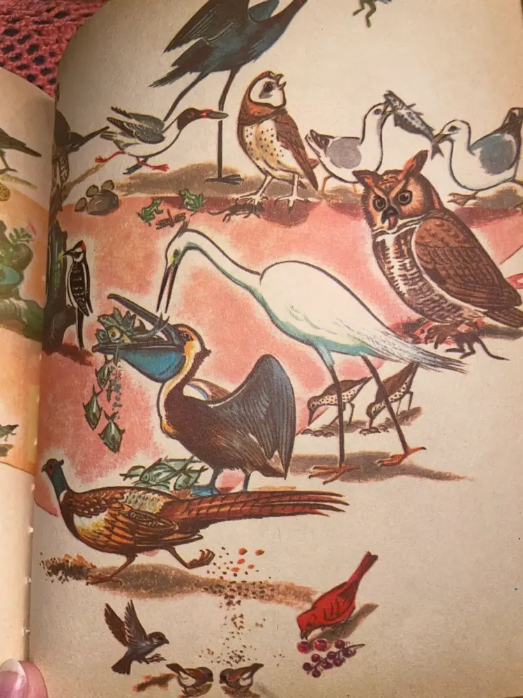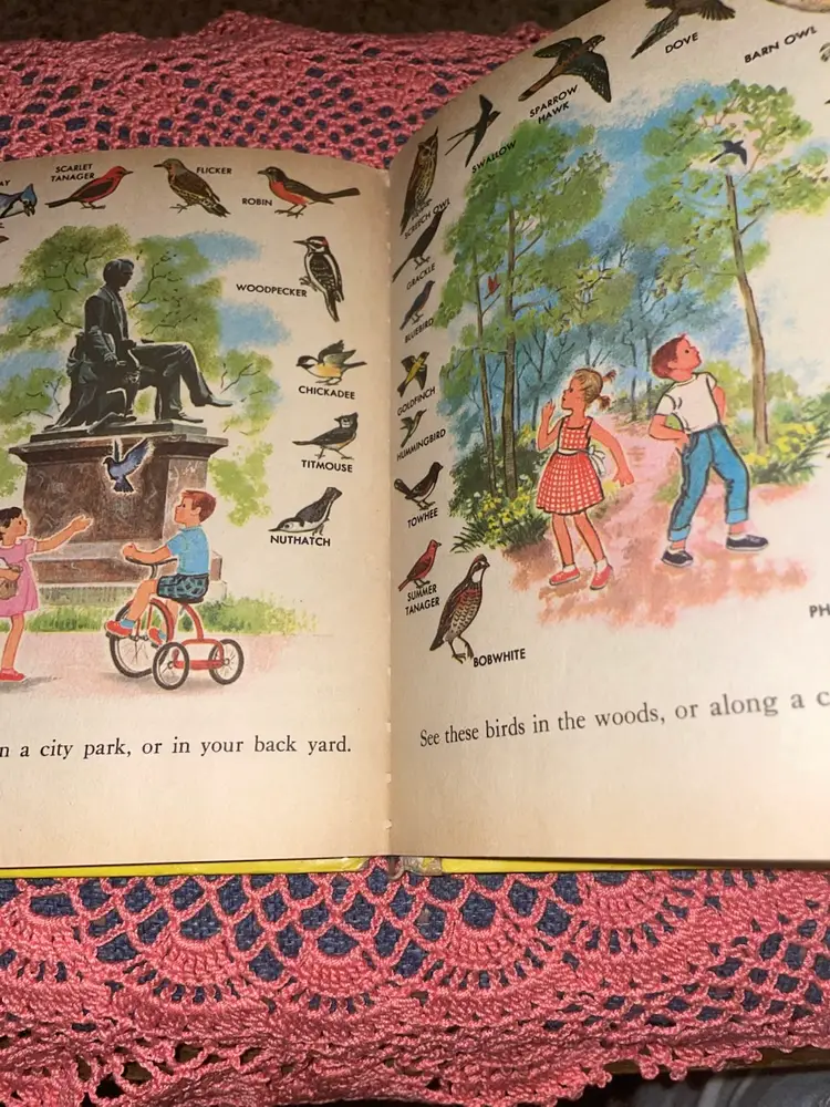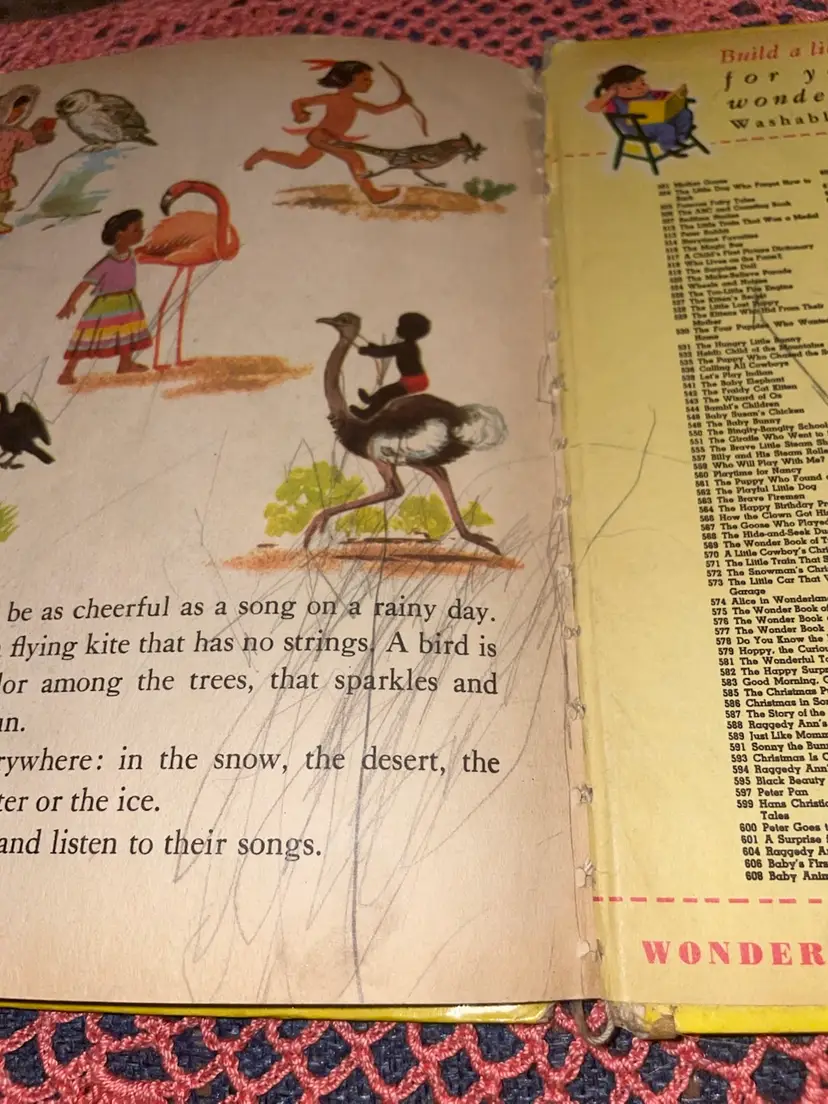 Bird has a chip on beak Book shows wear Some pages colored on Book would be great for crafting