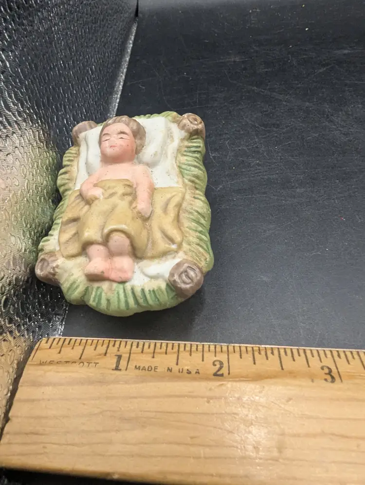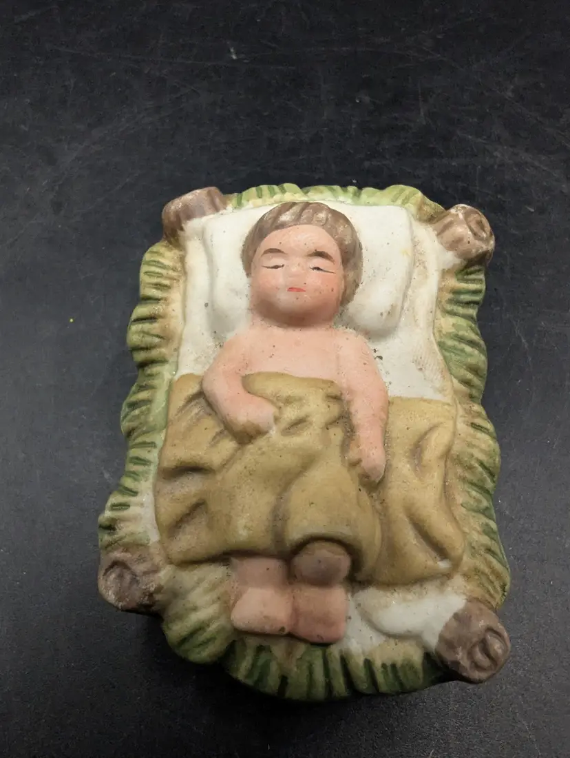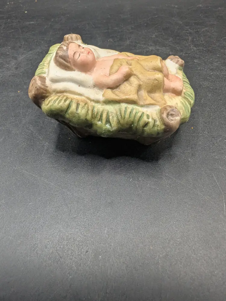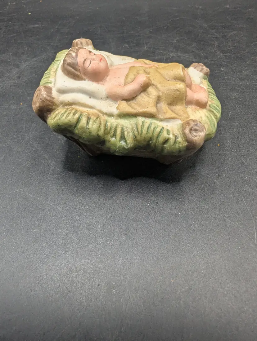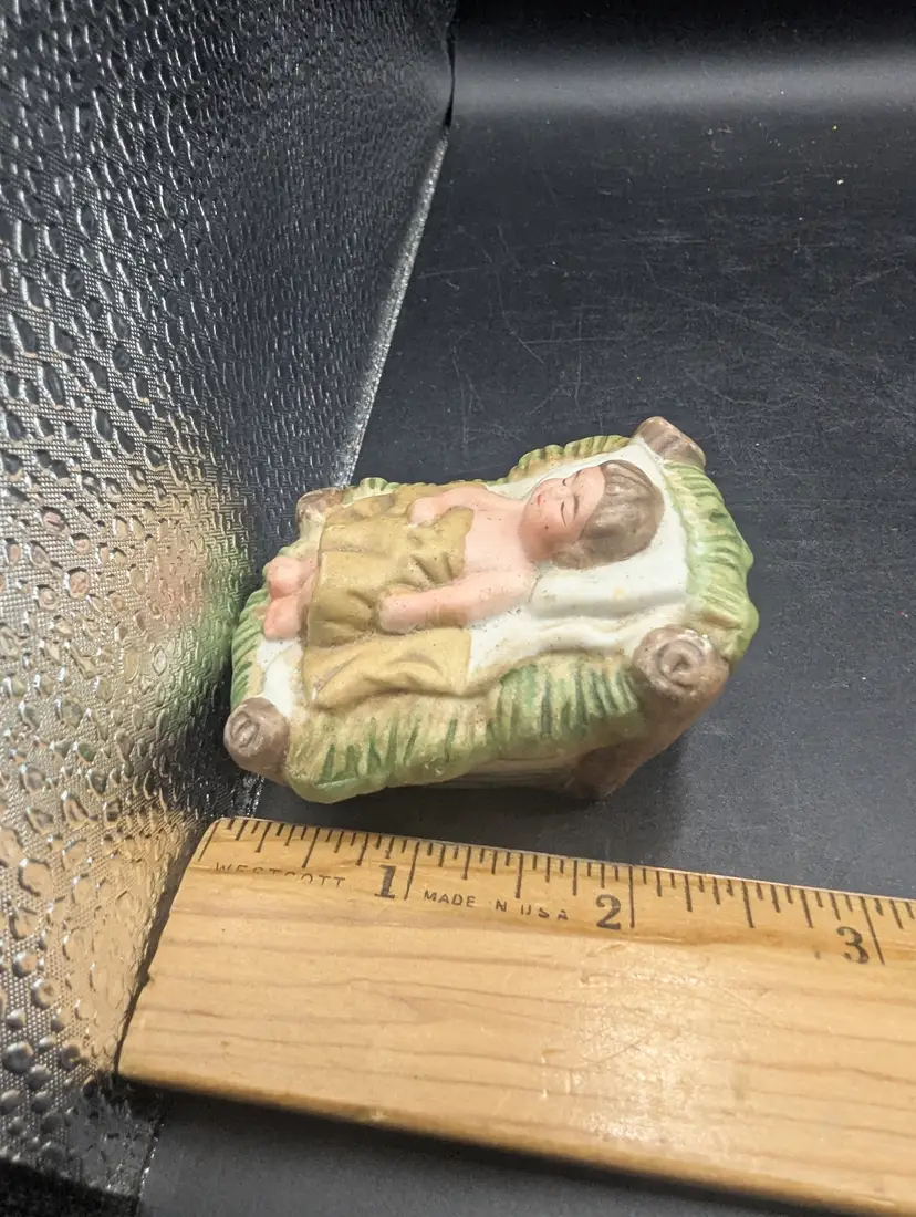 This is a fantastic Vintage Bisque Baby Jesus Manger Figurine Nativity Porcelain Hand Painted 2.50"L. Perfect if you need a replacement baby Jesus. No chips or cracks. Please see all pictures for condition and measurements.