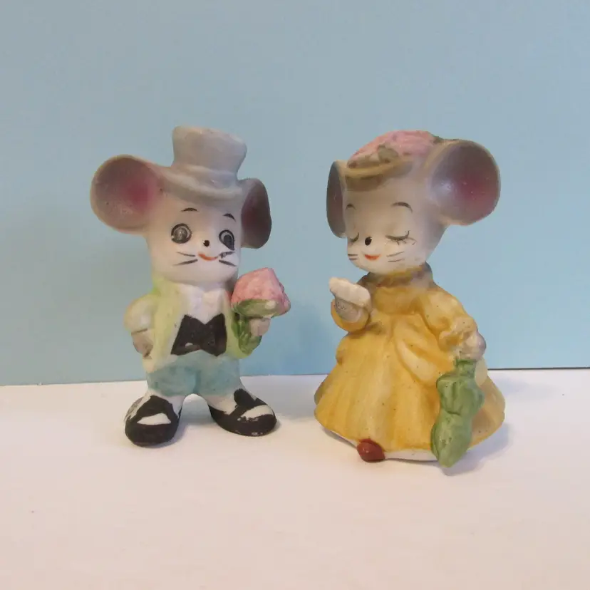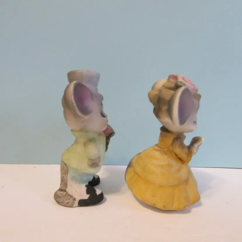 This adorable set of figures has some slight wear, but overall in good condition. Each is about 3" x 2" x 2".