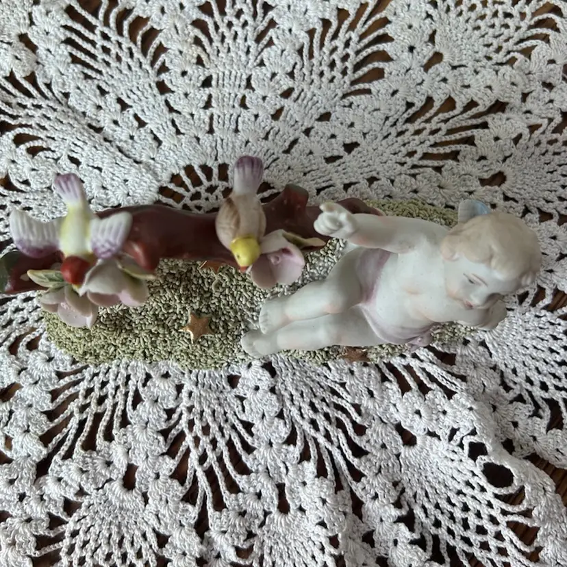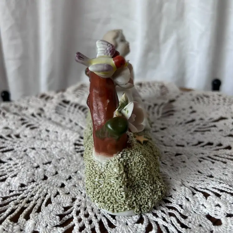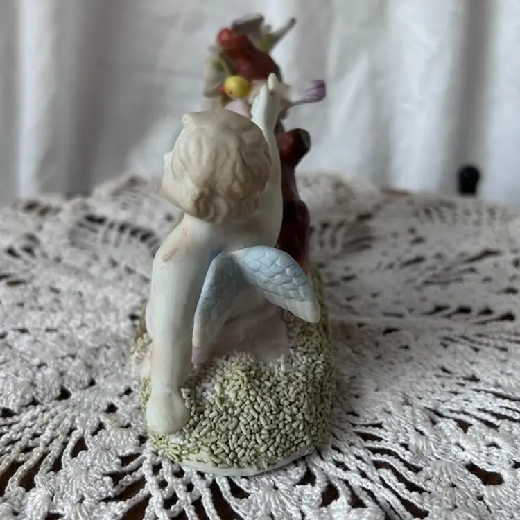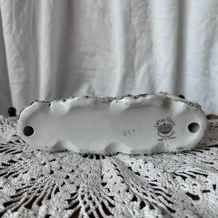 This sweet figurine is in excellent vintage condition. The printed stamp on the bottom indicates that it was made between 1946-53 and was from Japan. It measures 3.5” tall, 6” long, and 2” wide.